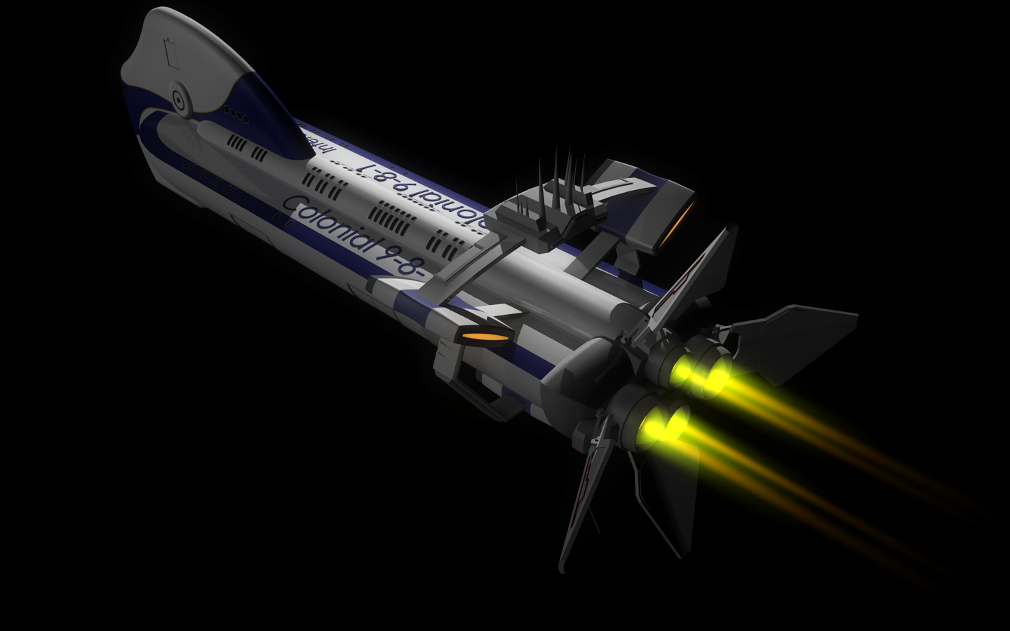 ich hatte den Tag über an dem Schiff weiter gearbeitet. So habe ch auch kurzerhand die ganez Antriebssektion verändert, habe die Fenster plastischer gestaltet, so dass sie nciht mehr nur draufgeklatscht sind und habe am unterem teil 2 Lucken auf jeder Seite angebracht... ja... müsst ihr halt gucken.