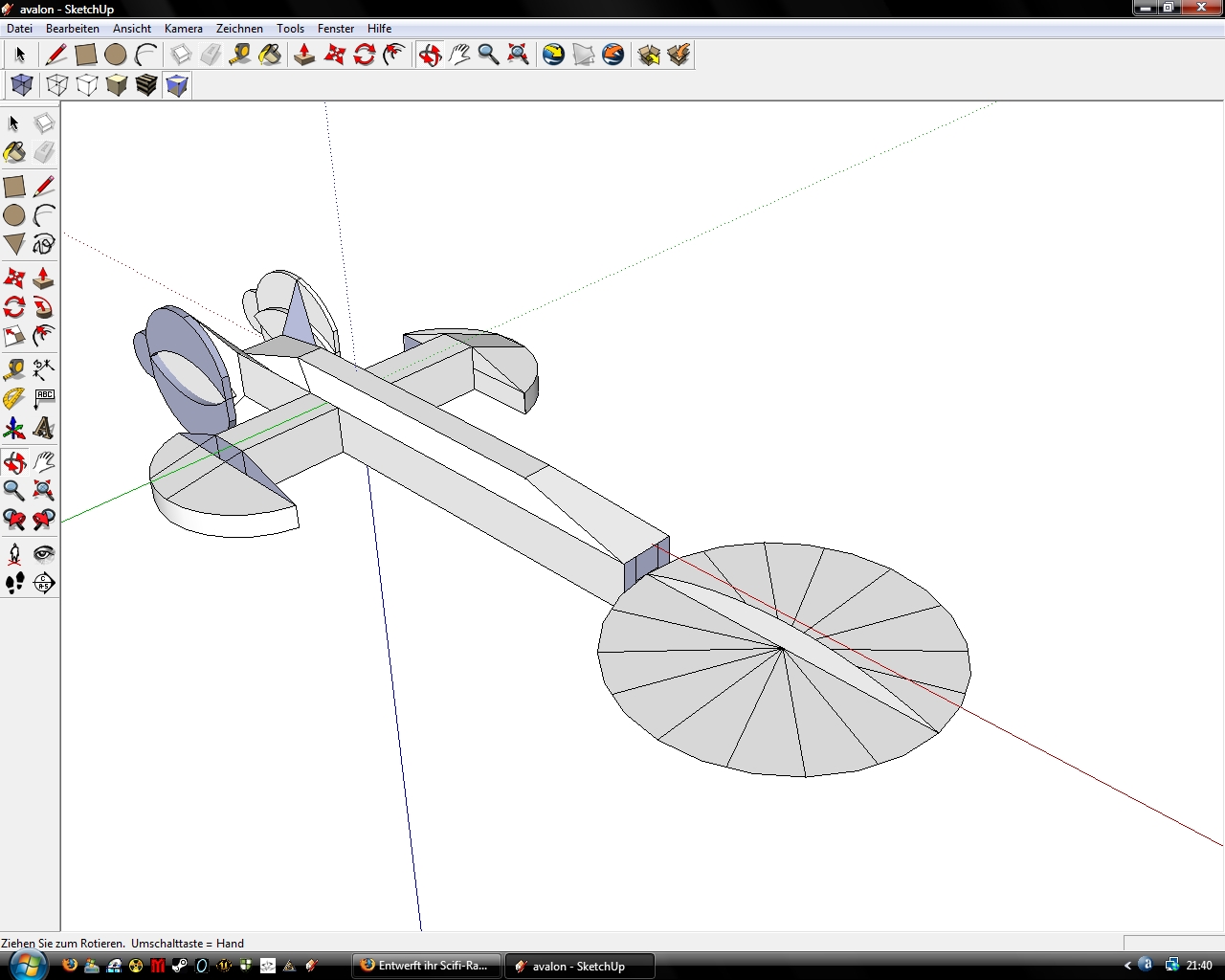 Okay, ich habe mal mit SketchUp angefangen zu experimentieren. Läuft für den Anfang ganz gut, allerdings bin ich noch nicht dahintergekommen, wie ich das Profil, gerade am Diskus, runder machen kann.