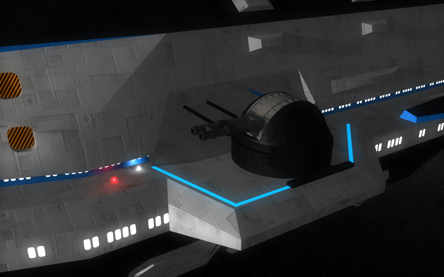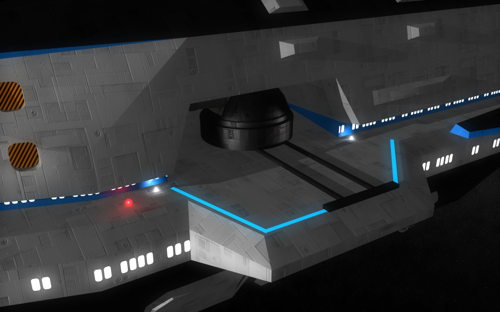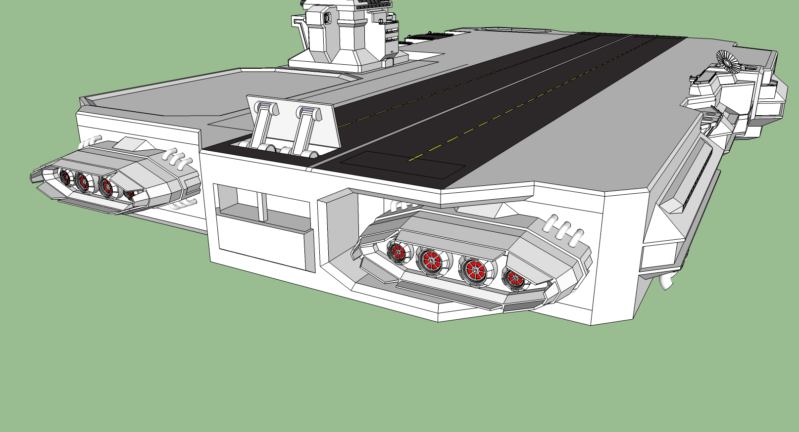 ich wollte keine großen bruckenaufbauten wie bei ein echten flugzeugträger auf mein LC haben. da sich die brücke ja unter deck befindet. lediglich eine radaranlage mit tiefenscanner und flugkontrollturm schmückt das deck, was die schlichtheit des LC auch noch mal unterstreichen sollte. alles was irgendwie zuviel gewicht enthält wurde weg gelassen, damit der LC schwimmfähig bleibt und eben im boden nicht versinken tut, da er über keine antischwerkraftgeneratoren verfügt wie kevinskis LC.
