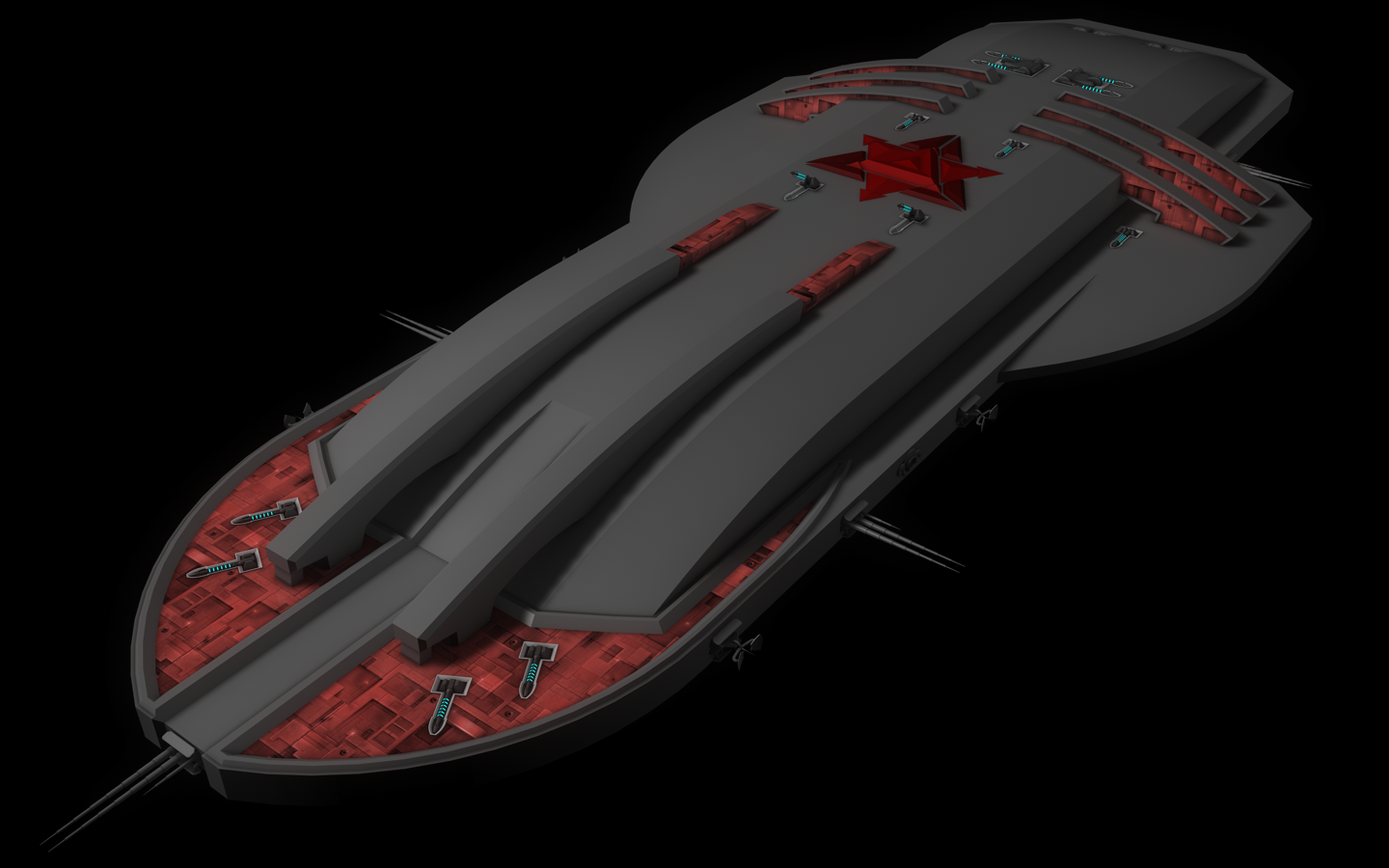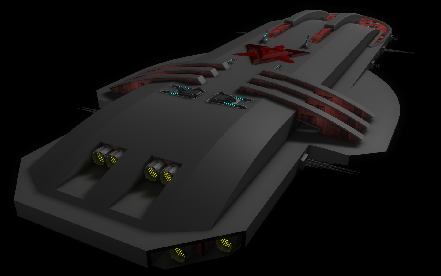 Es folgen noch ein paar Laser, Triebwerke und was ein Raumschiff halt sonst noch so braucht...