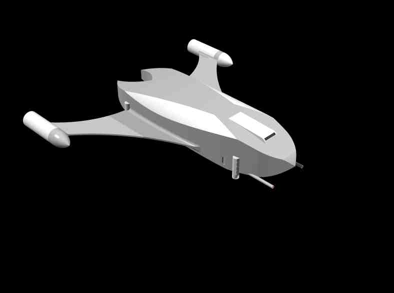 Damit habe ich mal versucht mein Raumschiff umzusetzen, allerdings noch ohne Texturen und Oberflächendetails. Die größte Schwierigkeit besteht darin, das Schiff nicht so aussehen zu lassen, als wäre es aus Knete.