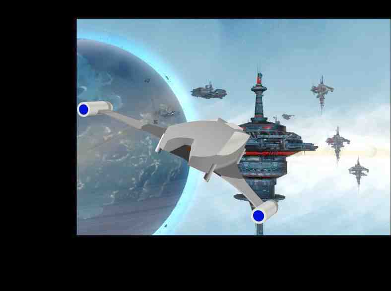 Ich habe in meinem Scifi-Universum an einem neuen Schiff gearbeitet. Es ist ein Atmosphären-Orbit Transportshuttle. Der Transporter ist 74 Meter lang, 74 Meter breit und zwölf Meter hoch. An der Unterseite gibt es eine Laderampe. Bewaffnet ist das Schiff mit zwei leichten Lasern. Angetrieben wird es im Raum von zwei Triebwerken an der Flügelspitze und in der Atmosphäre von vier Triebwerken an der Unterseite. Es besitzt zwar keine Rotationselemente, allerdings ist dies im Flug von Planeten zu Raumschiffen auch nicht erforderlich.