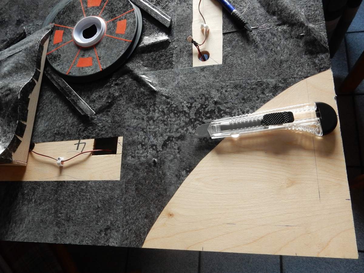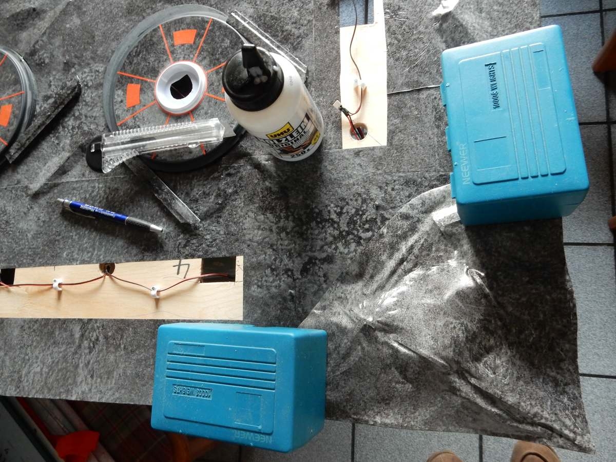 Der Maschinenraum ist fertig und heute abend habe ich 3mm LEDs ins Cockpit, Landescheinwerfer und Positionslichter rot und grün eingeklebt.