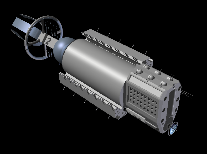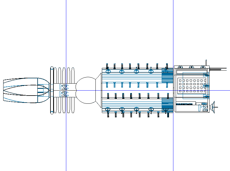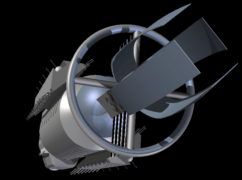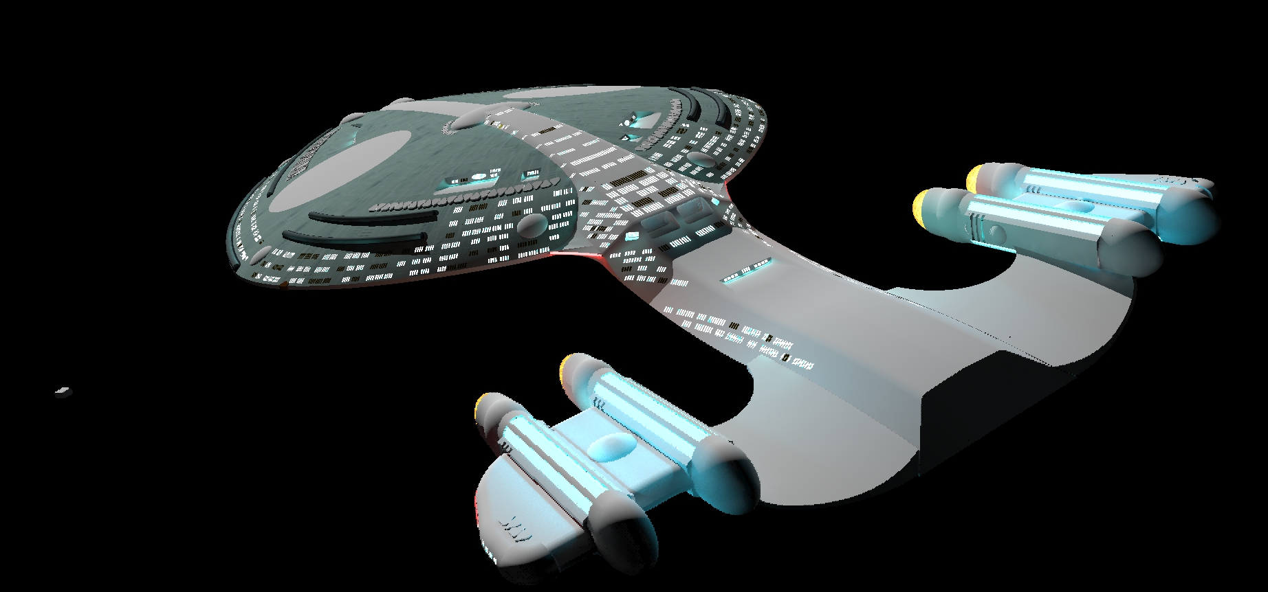 ich hab das schiff noch mal überarbeitet und jetzt für gut befunden. nach wie vor fehlen die gesammten unterseitendetails und der deflektor. aber aus den jetzigen winkel sieht man das eh nicht. auf eine textur habe ich verzichtet. das schiff hat soviel details, das eine textur überflüssig ist.