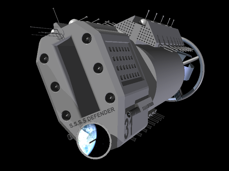 Mal ganz ehrlich, der Hintergrund sieht nicht nach Weltraum aus. Das "Raumschiff" könnte definitiv ein paar Polygone mehr vertragen und etwas mehr "Form". Ich würde da definitiv noch etwas dran arbeiten, die Grundform könnte man dann eventuell für einen Smooth sehr gut verwenden, aber so ist es eher bescheiden - wie die meisten der Sachen, die ich hier poste, auch.