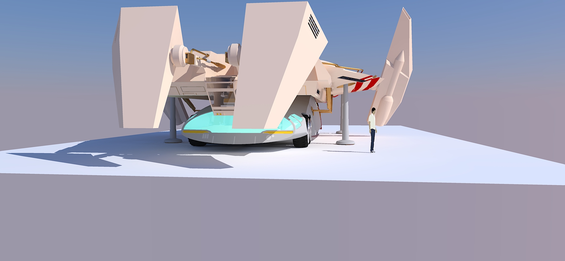 ich hab für ein anderes projekt mal ein transportshuttle entworfen. das in der lage ist, personen und güter zu transportieren.