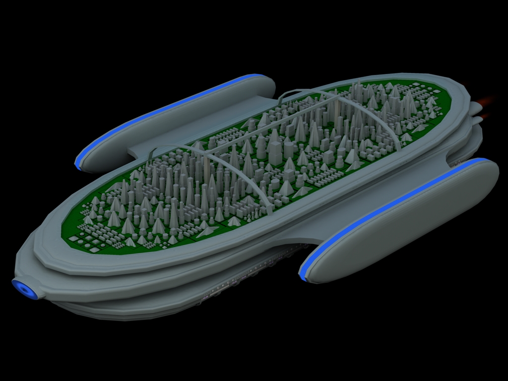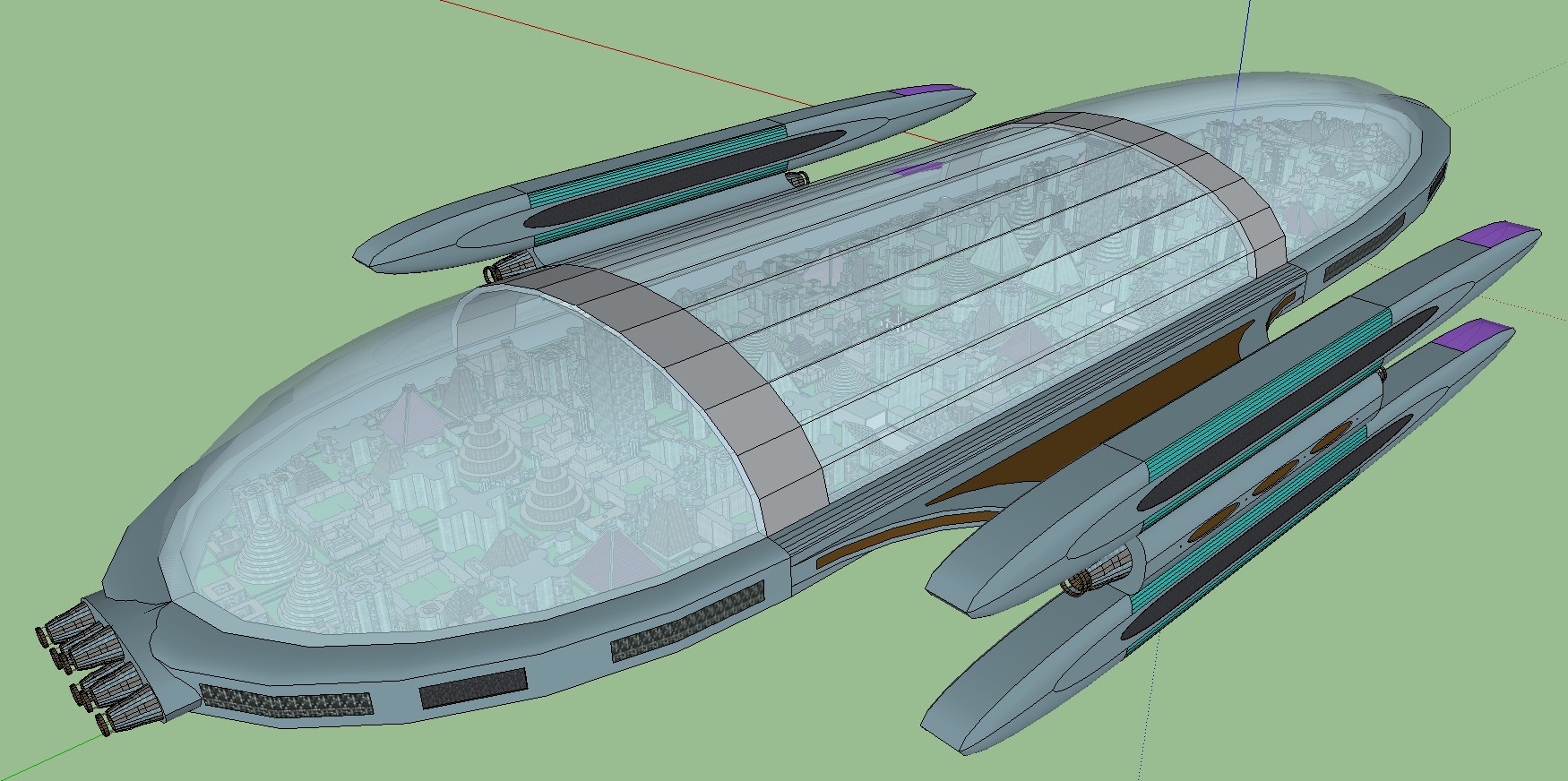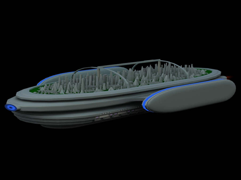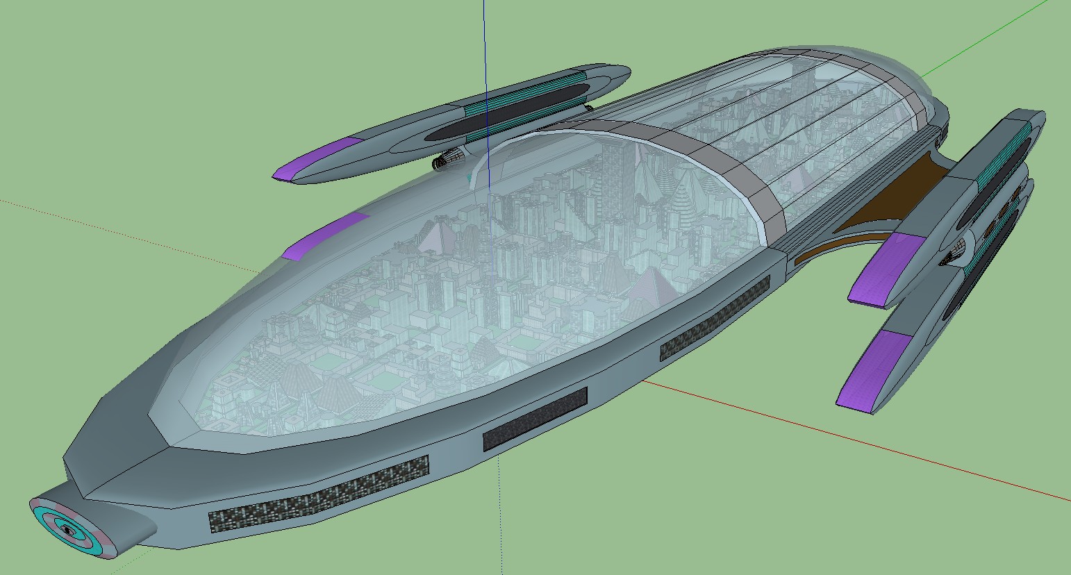 Nach dem ich es allen Ernstes net geschafft habe meinen Gedanken mit Papier und Bleistift bzw Paint Luft zu machen hab ich jetzt einfach mal 3 Tage hier und da n bischen rum modeliert und hier is die erste Version meines Stadtschiffs: