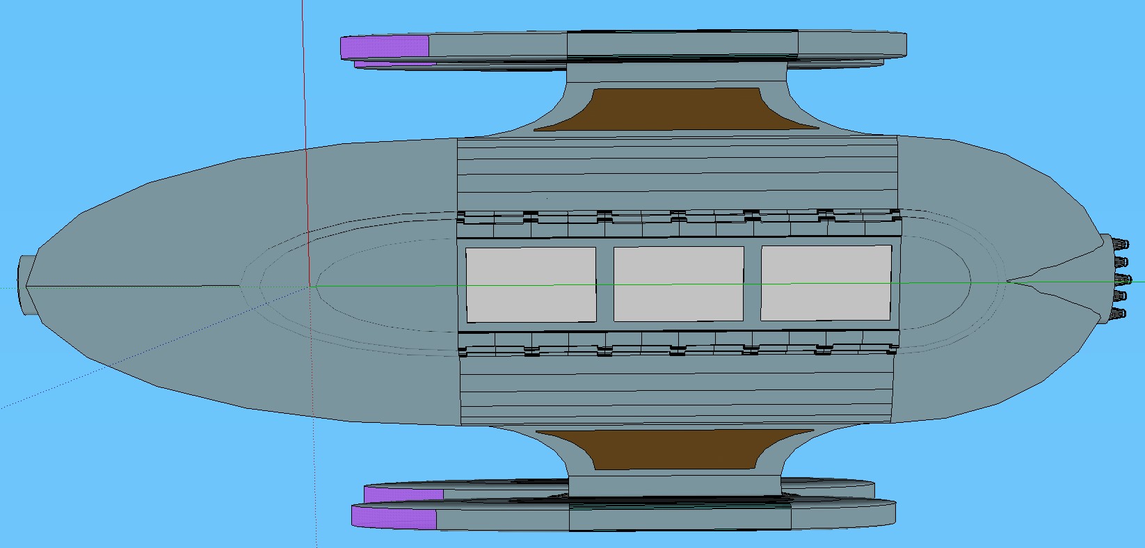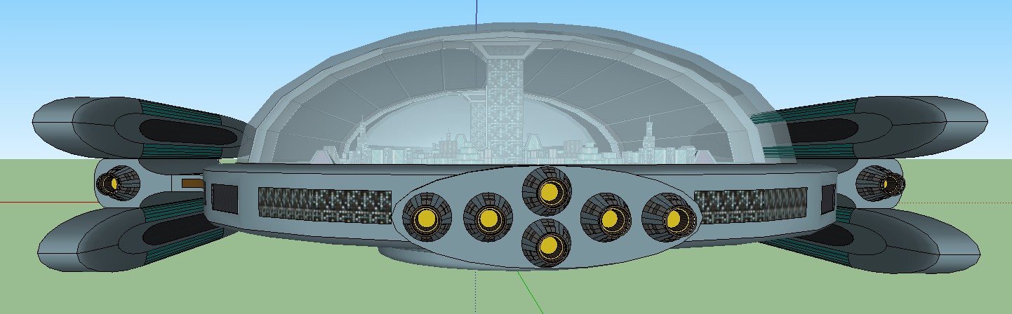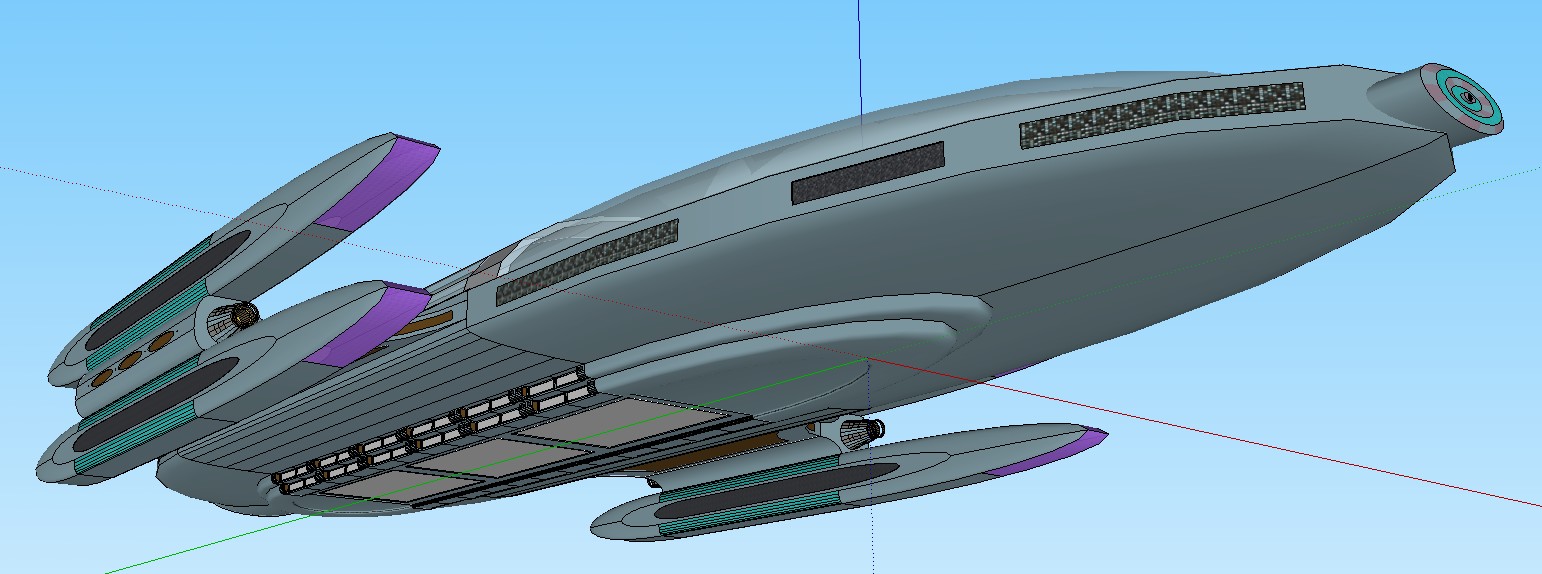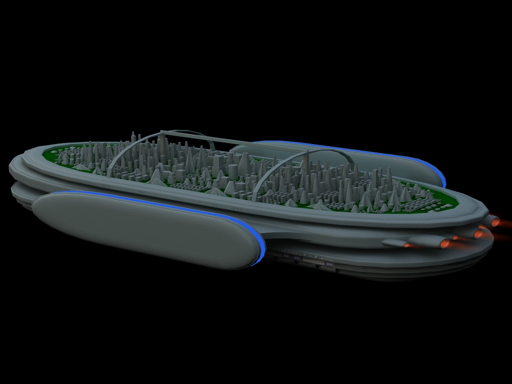 Nach dem ich es allen Ernstes net geschafft habe meinen Gedanken mit Papier und Bleistift bzw Paint Luft zu machen hab ich jetzt einfach mal 3 Tage hier und da n bischen rum modeliert und hier is die erste Version meines Stadtschiffs: