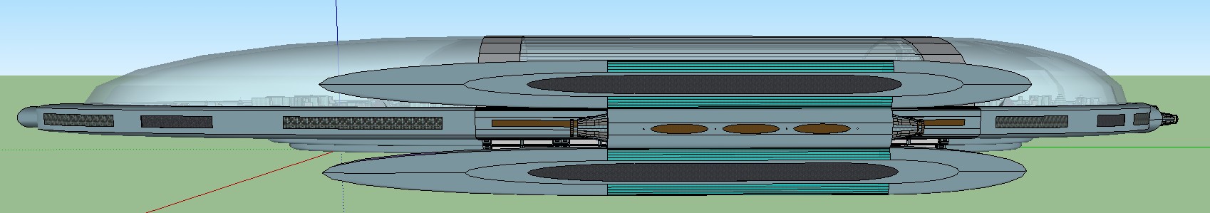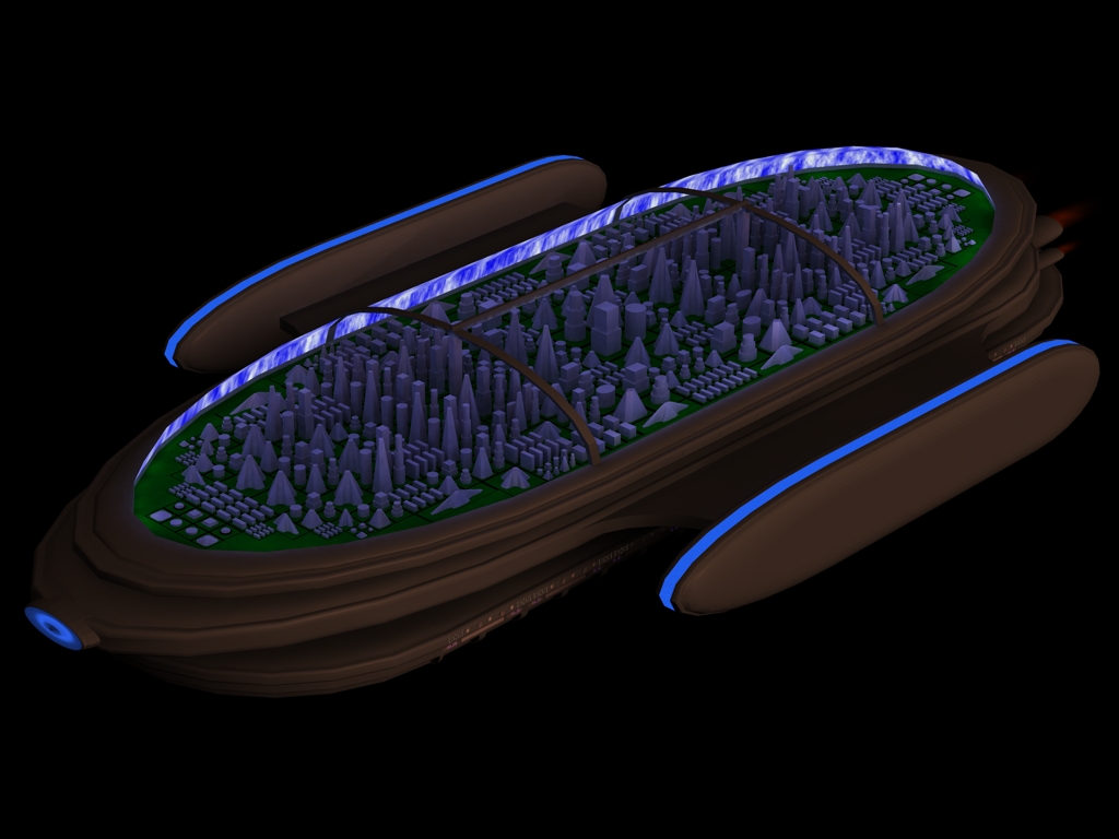 Nun rein aufs Design bezogen... irgendwie sieht das hier mehr wie eine kleine Luxusyacht aus, während das erste wie ein richtiges Kreuzfahrtschiff wirkte *find* beim ersten gabs genug Schiff für alles möglcihe und unmögliche, da konnnte man sich gut vorstellen, das alle Maschinen, Reaktoren, Energiespeicher usw. in den gigantischen Decks unter der Stadt verstaut werden konnten... bei dem hier *grübel* ähm... wo sollen da die Koffer hingepackt werden? Und passt dann noch ein Bierkasten rein? viel Stadt, etwas zu wenig Restschiff, so irgendwie.