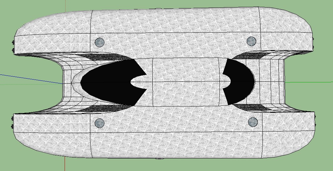 Pustekuchen o.O Also die Mitte konnte ich abdichten, die dunkelgrauen Flächen der beiden roten Spitzen jedoch... Man kanns gut auf dem zweiten Bild sehen, genau in der Gondelspitze, die Wand der Ausbuchtung ist da recht hell, das kommt von innen durch. Jedoch befindet sich momentan hinter der dunklen Fläche jetzt noch eine extra Deckfläche, ist sozusagen in einer dichten Schale eingebettet. Hab die Seitenwand nach hinten verlängert und dann noch eine Decke drüber gezogen. Eigentlich sind da alle Teile bündig, es scheint dennoch an den Nähten durch.
