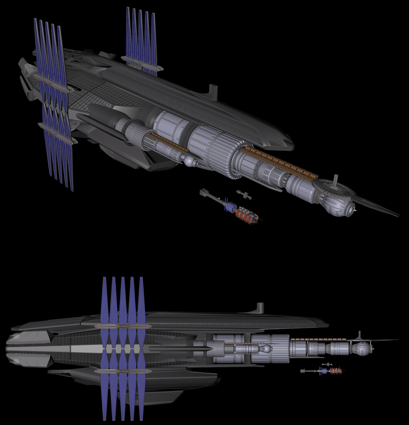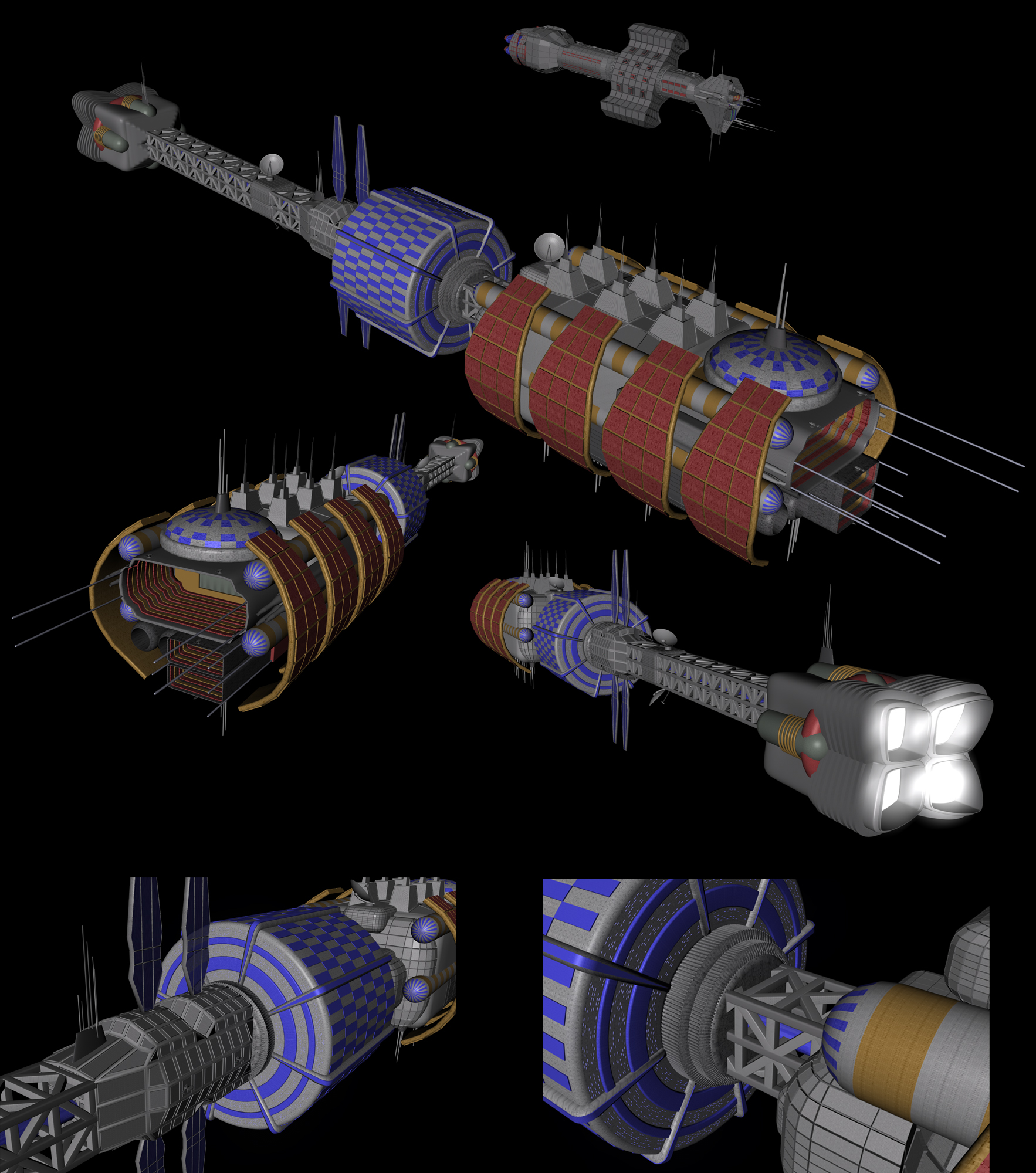 Sodele, auch mit der ISS DAEDALUS geht es zügig voran - einige Details an der Sekundärhülle und die unteren Manöverdüsen an der Primärhülle, und ich kann das Modelling abschließen und mich an die Texturen begeben...