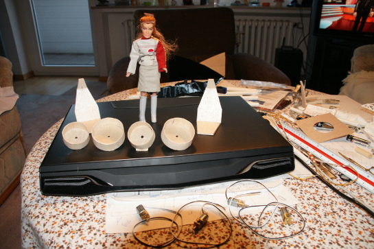 Da ich zur Zeit dabei bin, den Eagle (Space 1999) zu bauen, hier mal meine Kabinenhaube und Triebwerk.