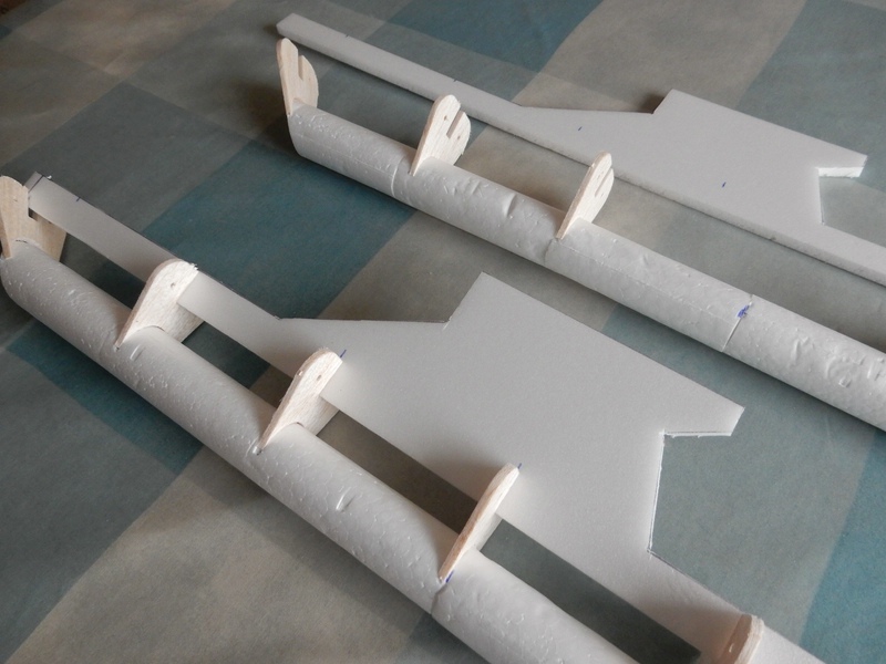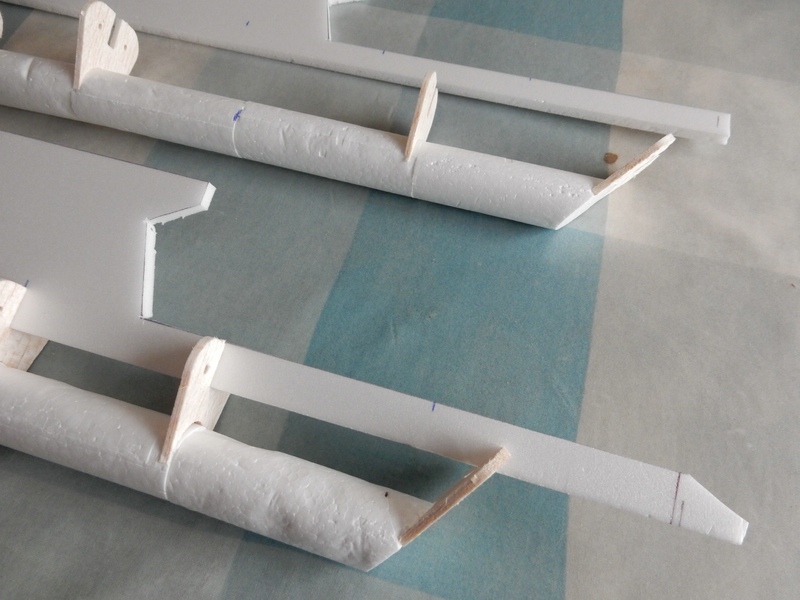 Auch habe ich aus Depron 2 45cm lange Röhren erstellt. Aus 3mm Balsa wurden die passenden Teile dafür auch CNC gefräst.