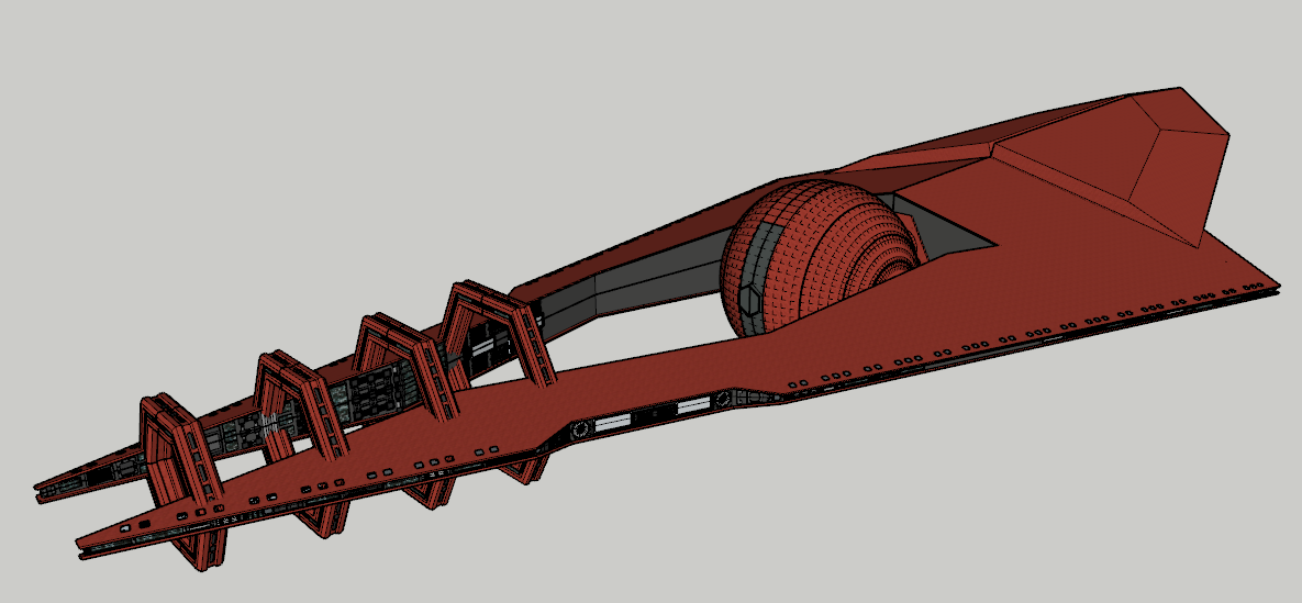 - Ich bin ein Riesen-Fan der Lucrehulk Klasse (Ringfrachter) der Handelsföderation. Ich weiß, da passt es besser weil der äußere Rumpf rund ist.