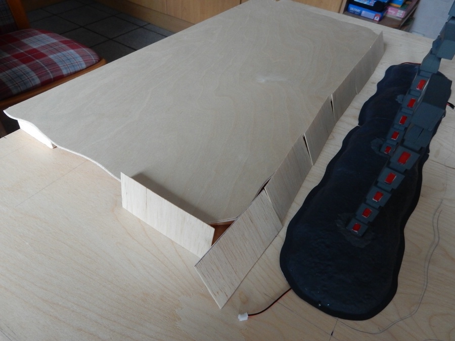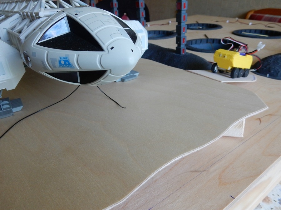 Ich habe heute abend mal eine Passprobe für mein Podest auf der Mondplatte gemacht. Weiter bauen geht noch nicht, da ich erst die Beleuchtung für das Podest basteln muss.