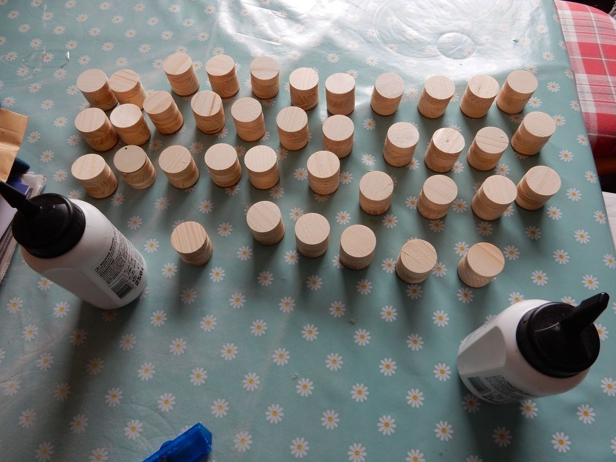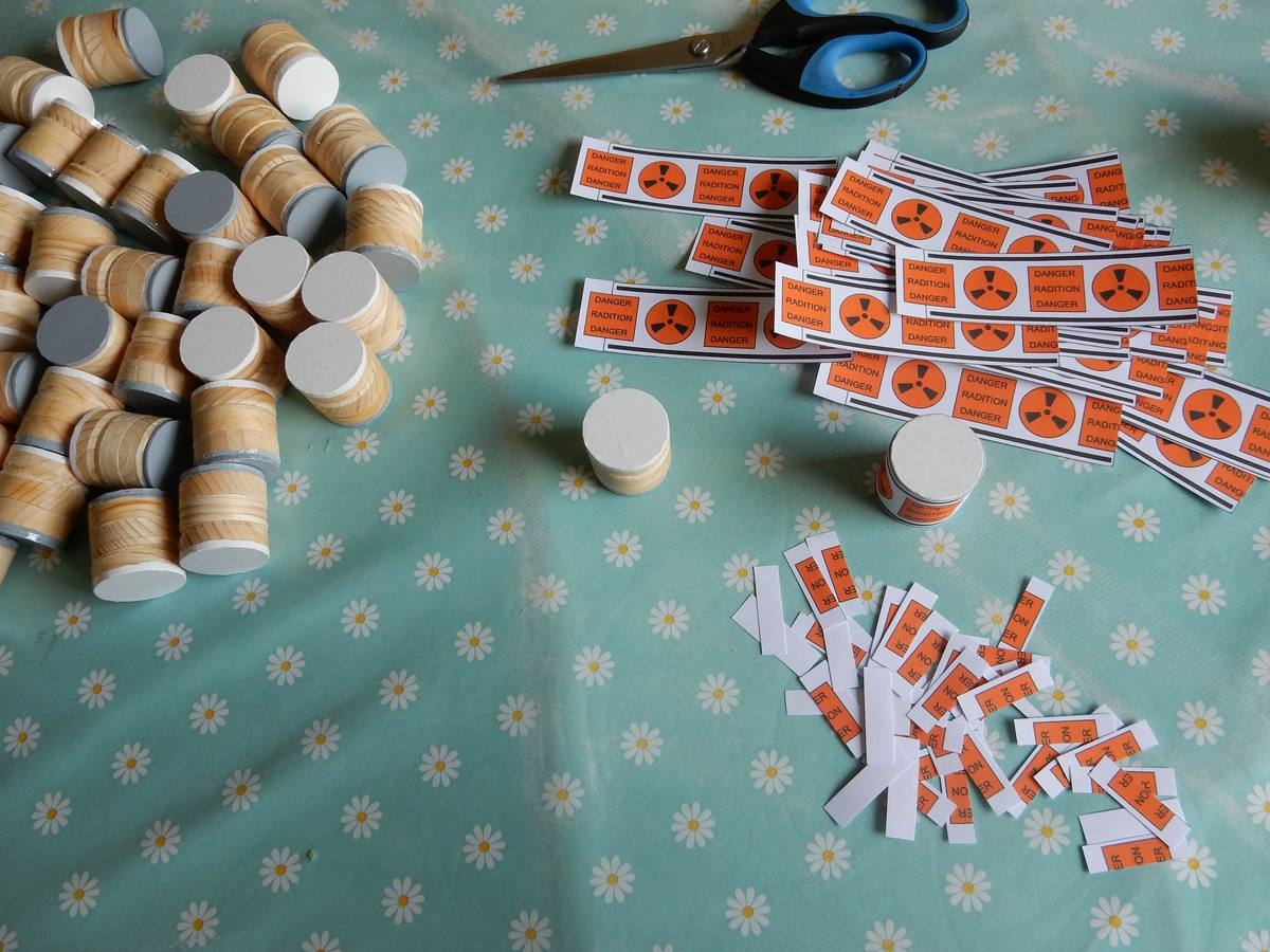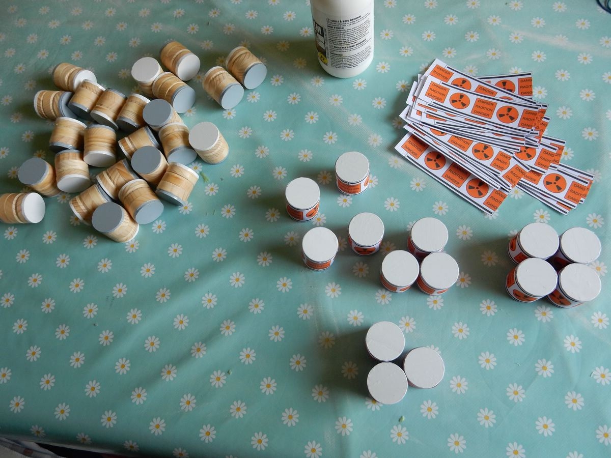 Ich habe heute die Holzfässer fertig gestellt. Jetzt brauche ich nur noch den Boden grau und die Deckel weiss bügeln.