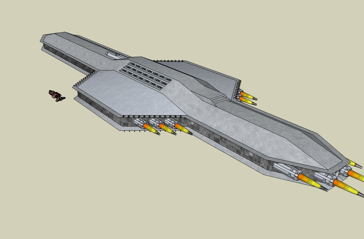 aber macht es nicht zu riesig, hab noch andere völker im sinn die technisch weiter sind, die schiffe sollten also richtung 2 kilometer länge nicht überschreiten(das aktuelle niveau ist etwas oberhalb der erdallianz in b5). und nicht vergessen, relativ primitive kultur. im vergleich zu später auftauchenden spezies(die werden teilweise eher das niveau der minbari haben)