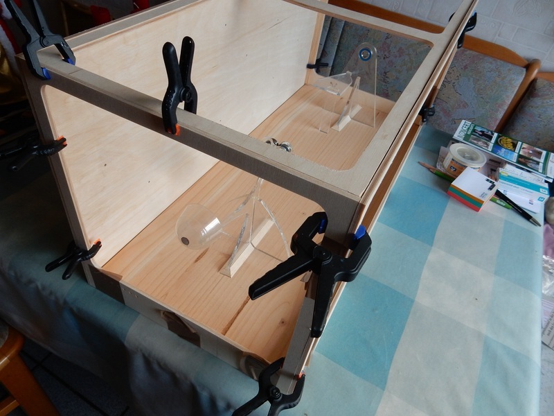 Ich habe den ersten Teil der Vitrine verklebt. Tapete ist heute leider noch nicht gekommen.