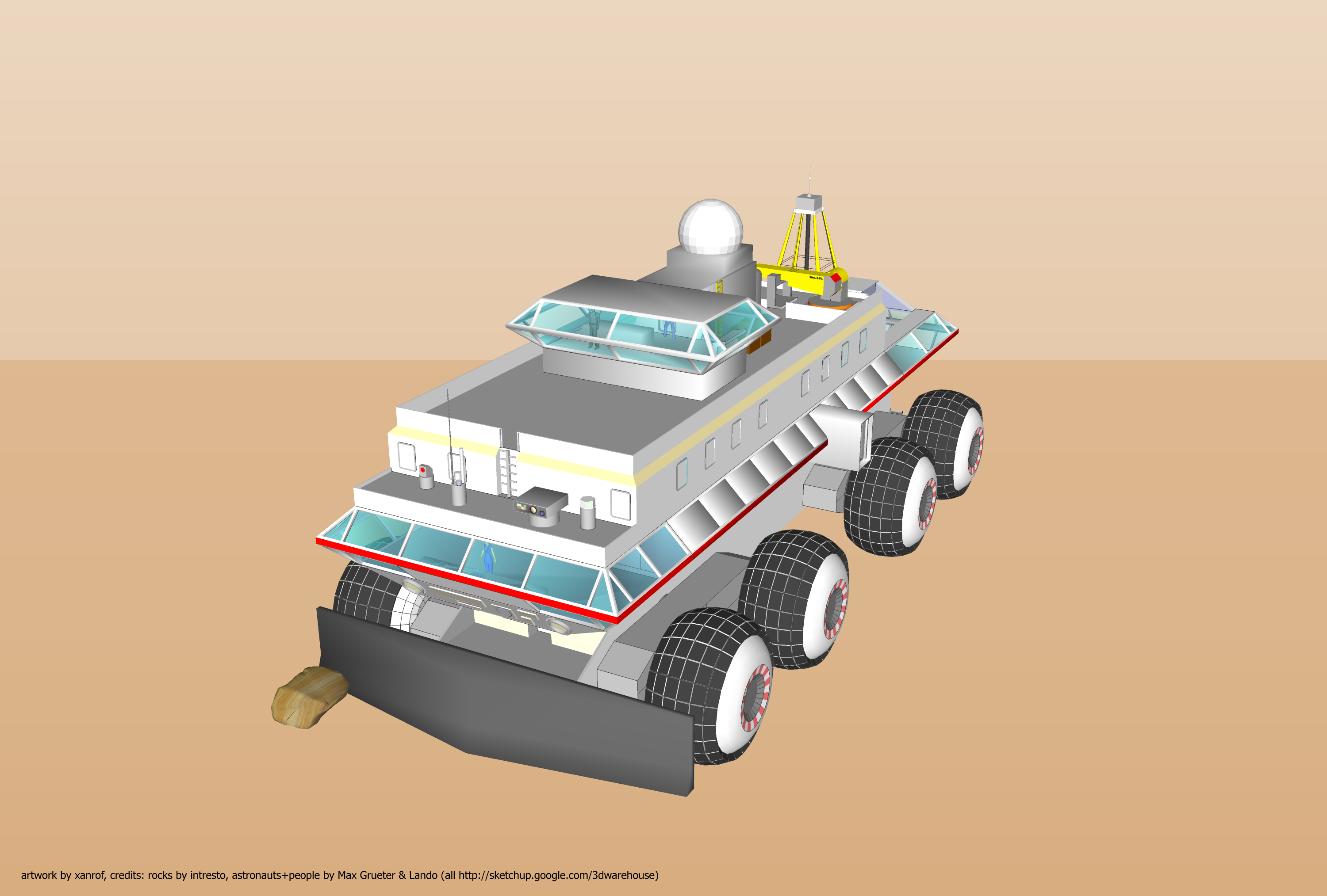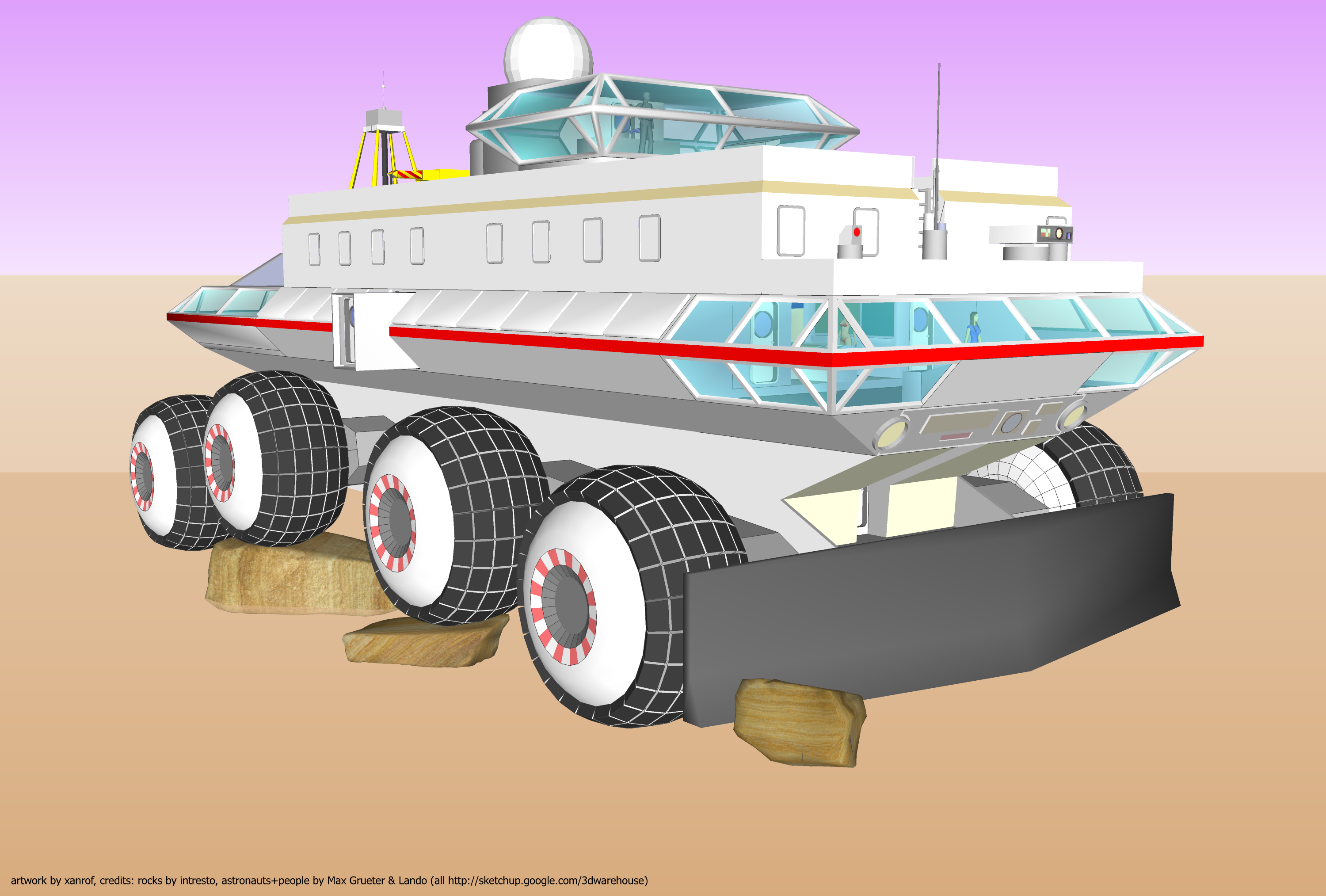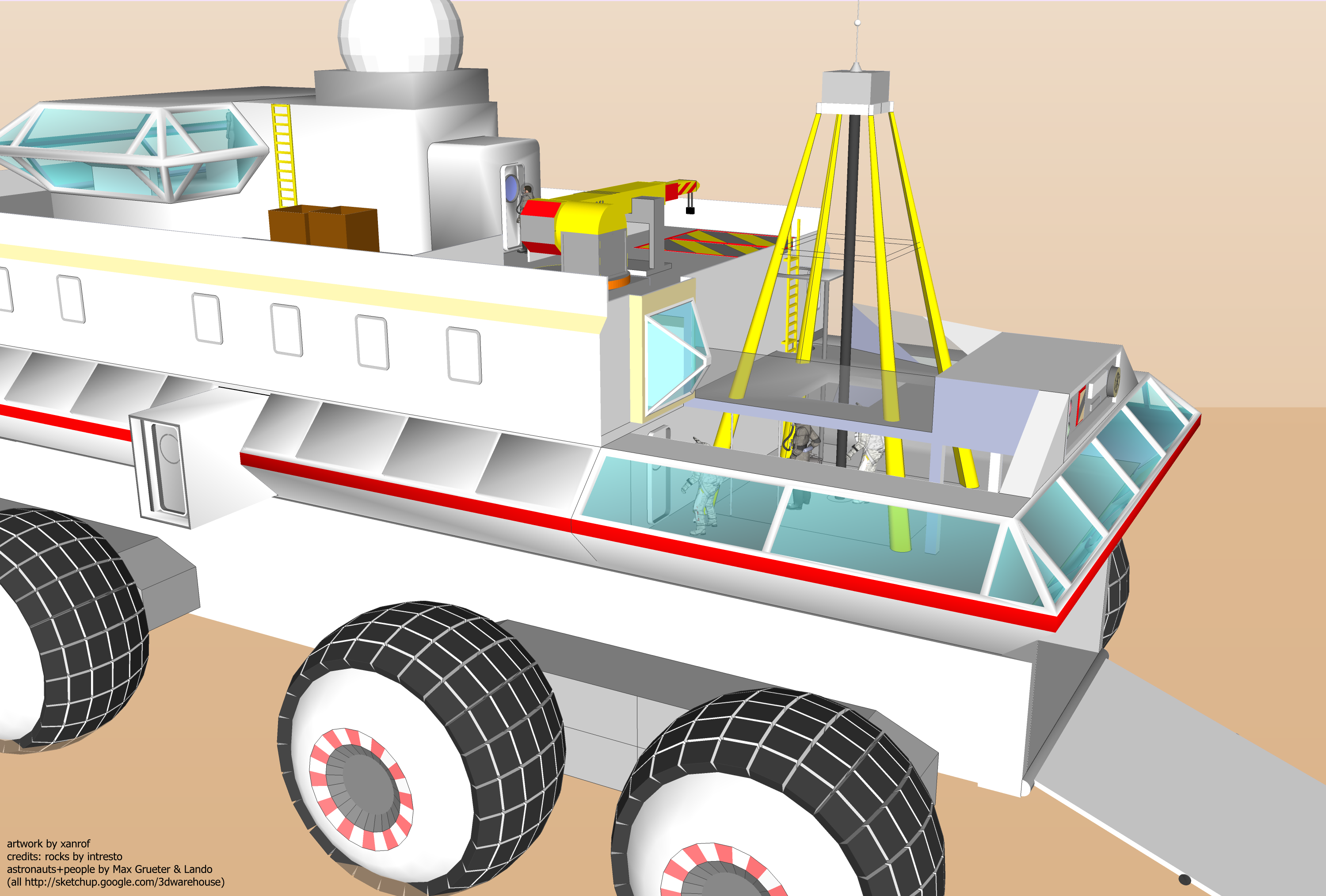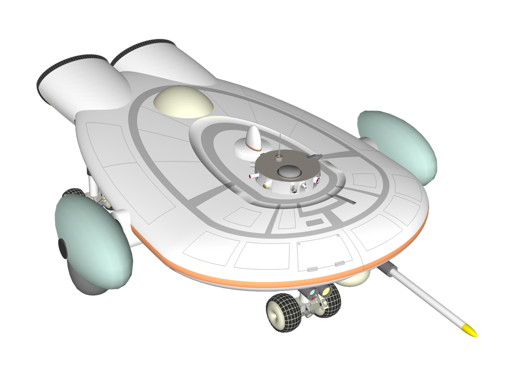 Allerdings haben es mir -zur Zeit- nicht die grossen, interstellaren Raumschiffe angetan (wie man sie hier findet), sondern eher das, was sich auf anderen Planeten, Monden oder Asteroiden in relativer Bodennaehe befinden oder bewegen kann.