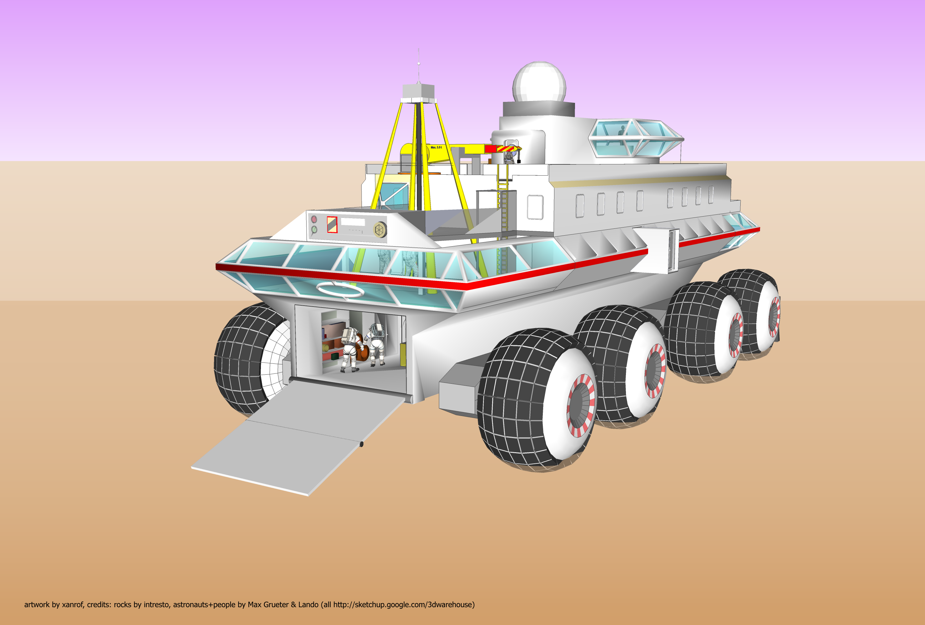 - alle Arten von Fahrzeugen: "Mondautos", Erkundungs- oder Explorationsvehikel oder