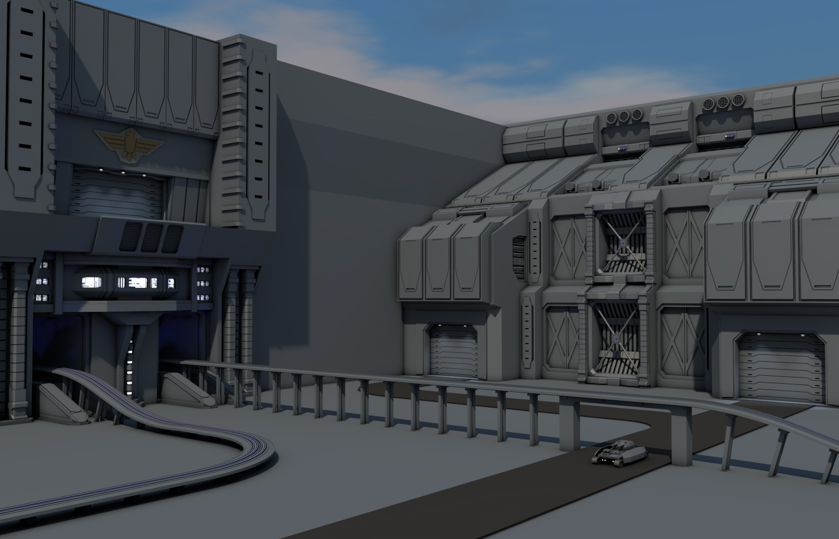 Am Ende schwebt mir eine Art digitales Diorama vor, mit Fahrzeugen, Shuttles, Gebaeuden in einer ''fremdartigen'' Landschaft.