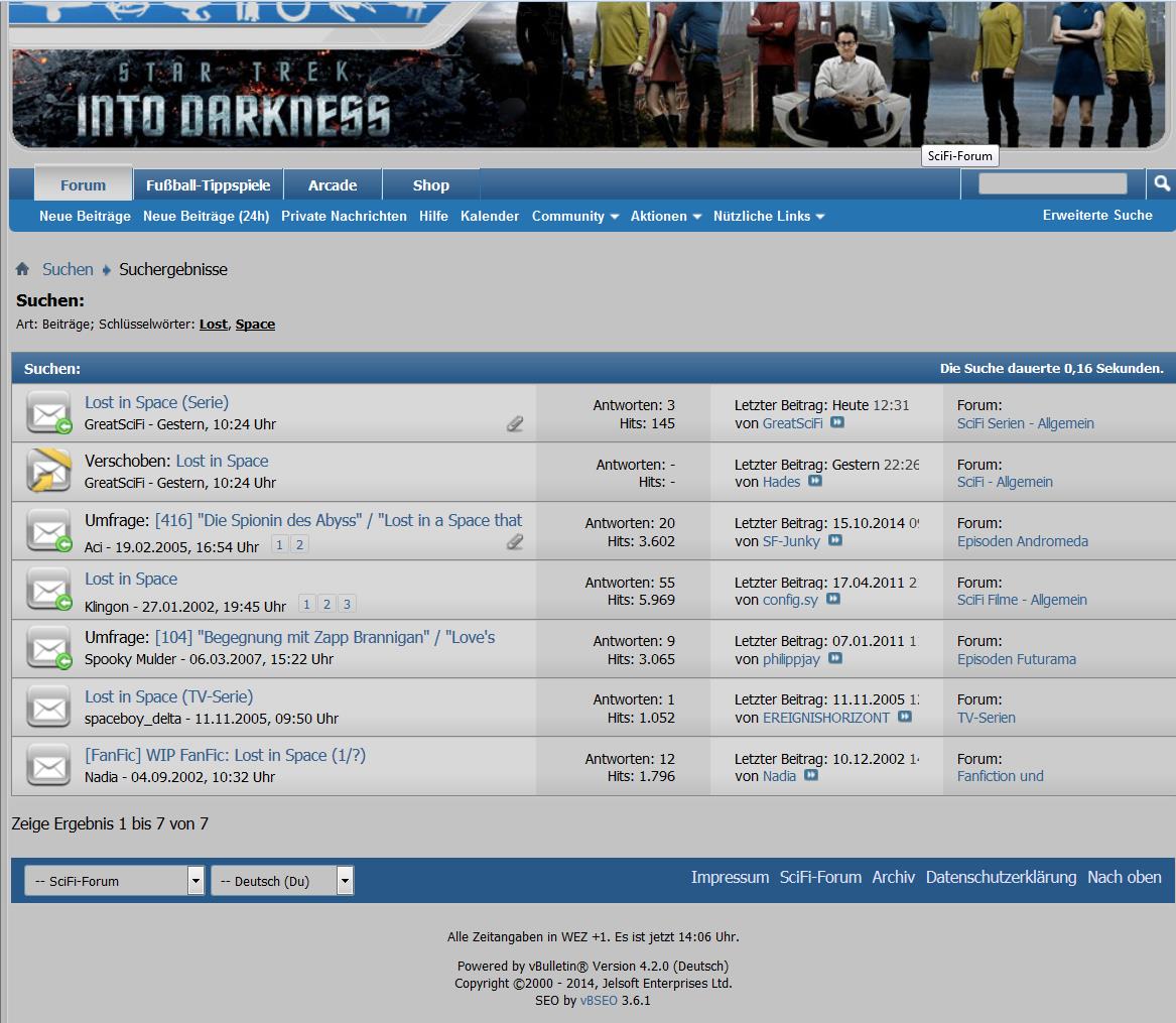 Ich hab nämlich bei erweiterter Suche nur Lost in Space angegeben und erhielt eben jene oben gezeigte nichts sagende Anzeige, bei der nicht annähernd so etwas wie Lost in Space herauskam...