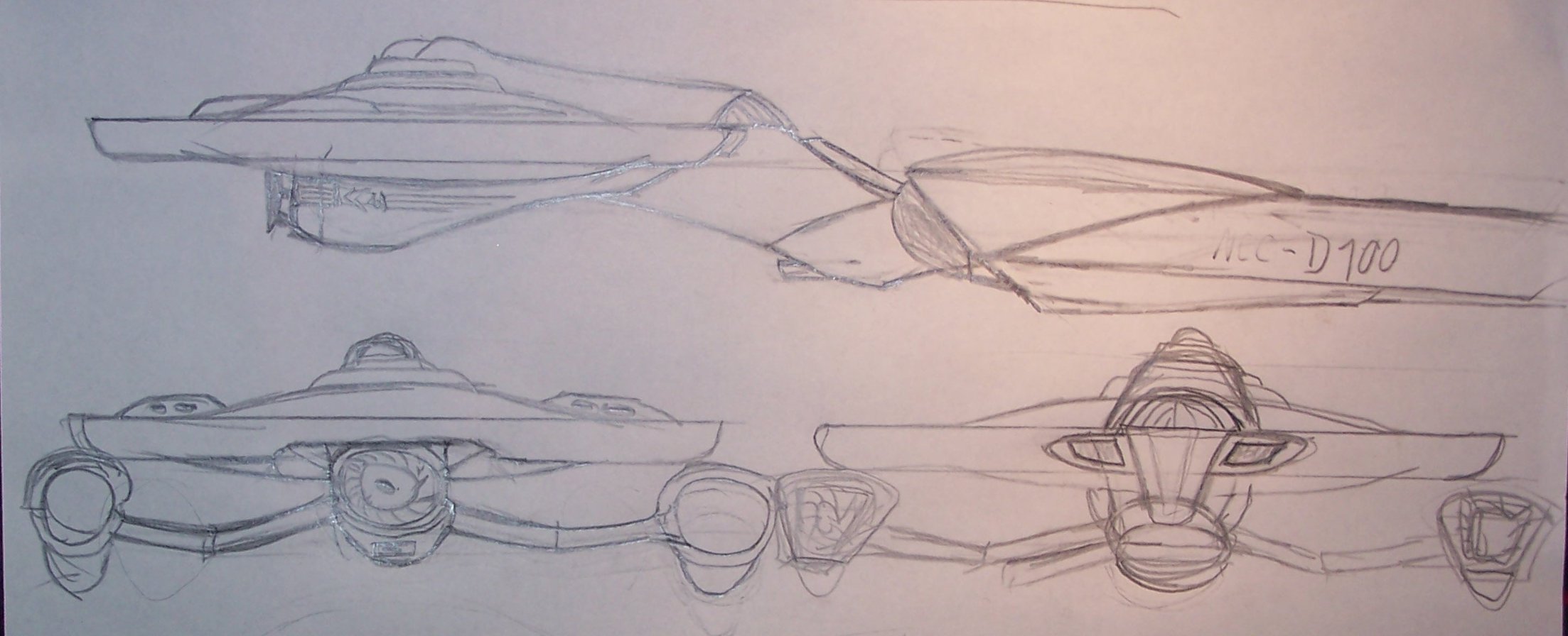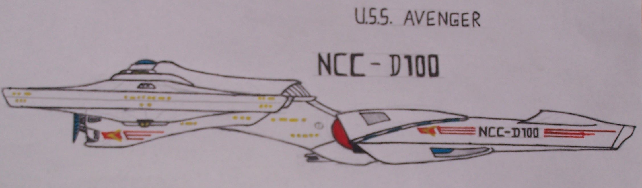 Es ist die USS Avenger im neuen Schiffsdesigen aus Star Trek XI. Einmal eine Entwurfsskizze und als zweites die Seitenansicht als Zeichnung.