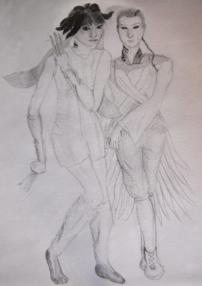 So, dann stelle ich hier mal meine Kritzeleien ein. Ich weis nicht, ob das noch als Star Trek gilt, ich meine, das sind keine Figuren aus dem Universum, aber man sieht ganz klar, von welcher ich mich beim Zeichnen inspiriert habe. Die sind aus einer kleinen Geschichte, die ich grade schreibe. Kein Fanfiction, es spielt nicht im Star-Trek-Universum, aber man merkt schon, dass es Abklatsch ist^^