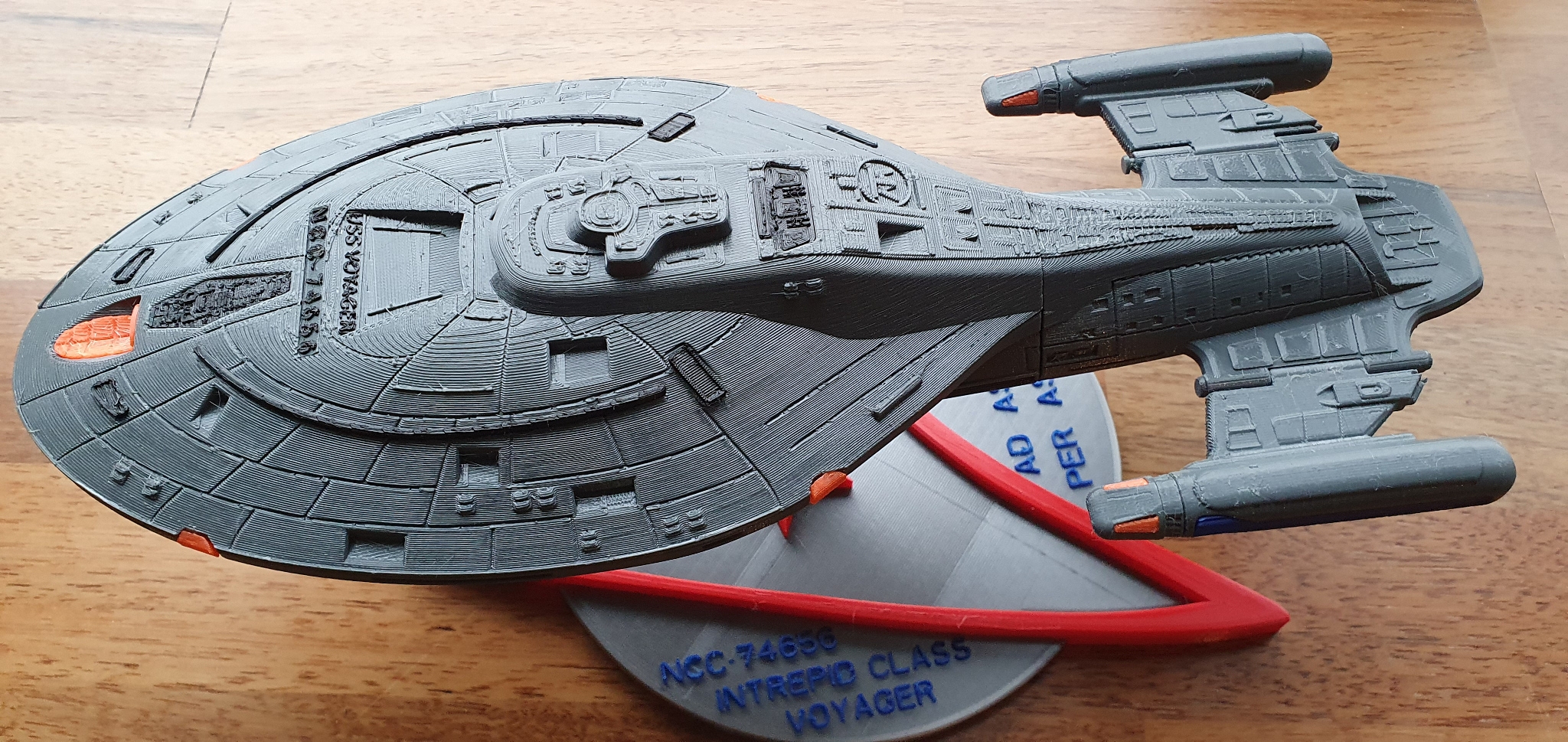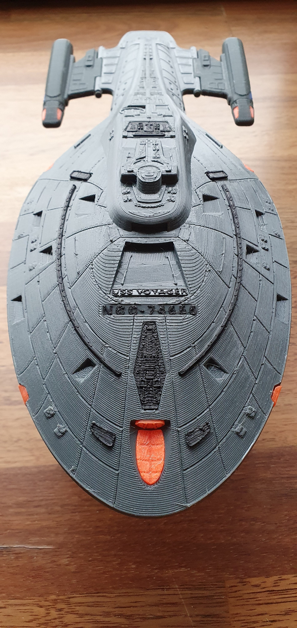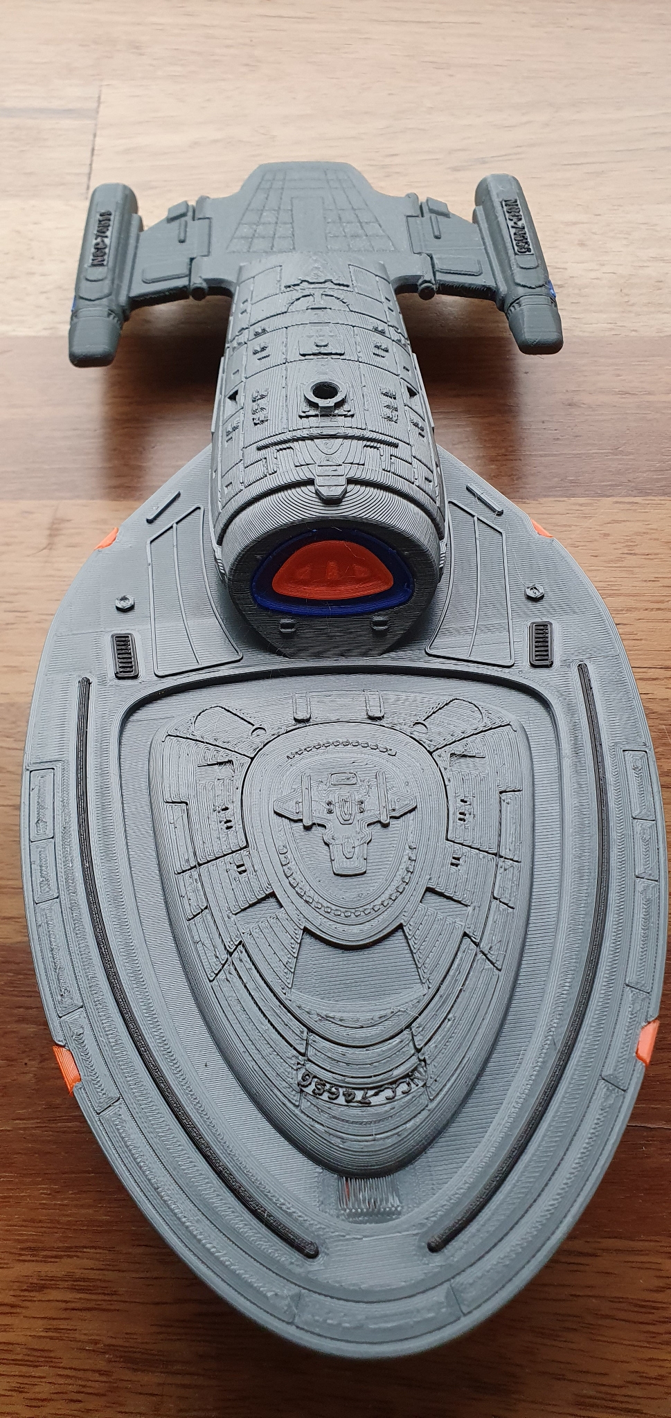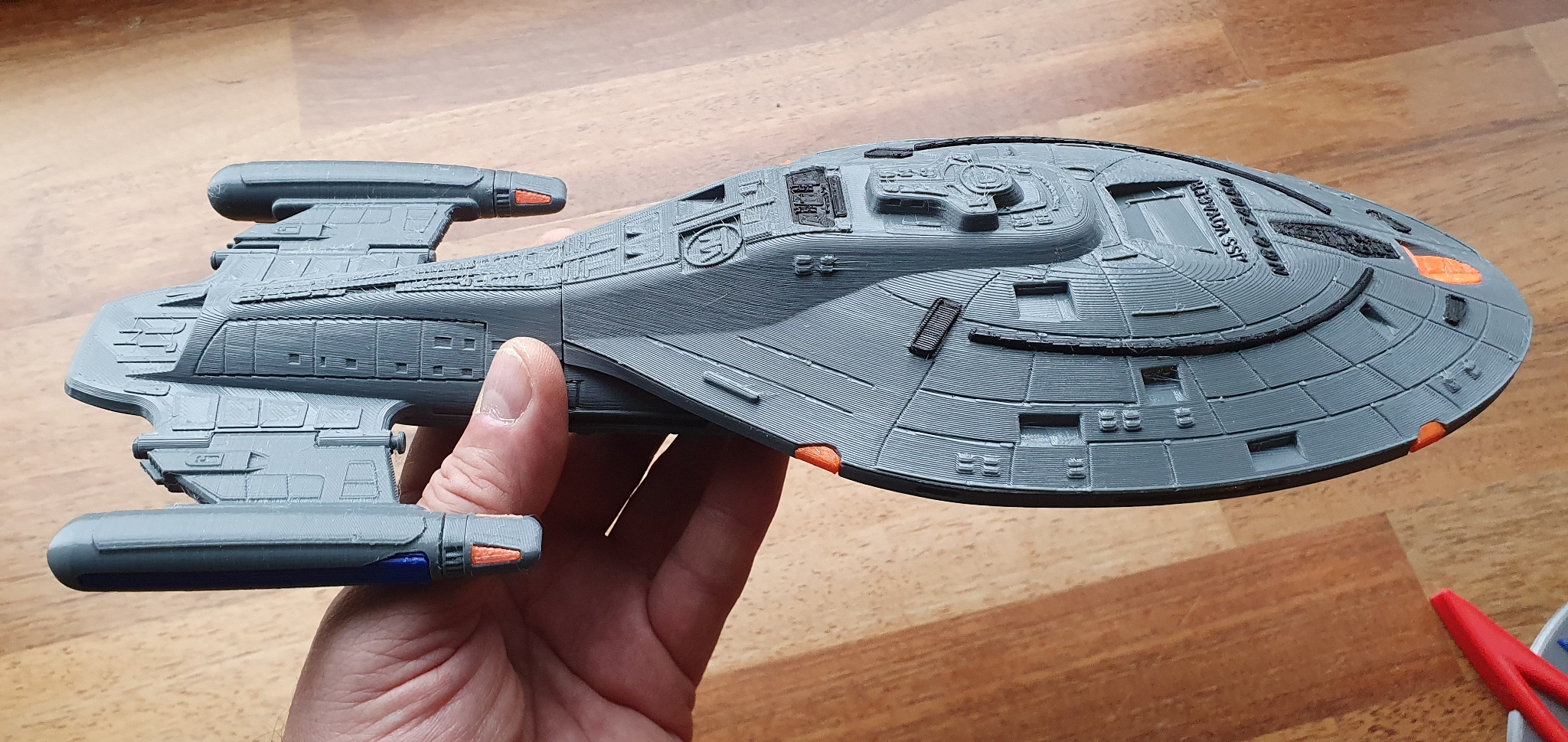 Ich habe "Just For Fun" mal mit einem 3D-Drucker ein etwas übergroßes Modell einer NCC-1701-E (Sovereign Class) ausgedruckt. Ich fand das Modell cool und wollte mal sehen, wie es in Natura aussieht.