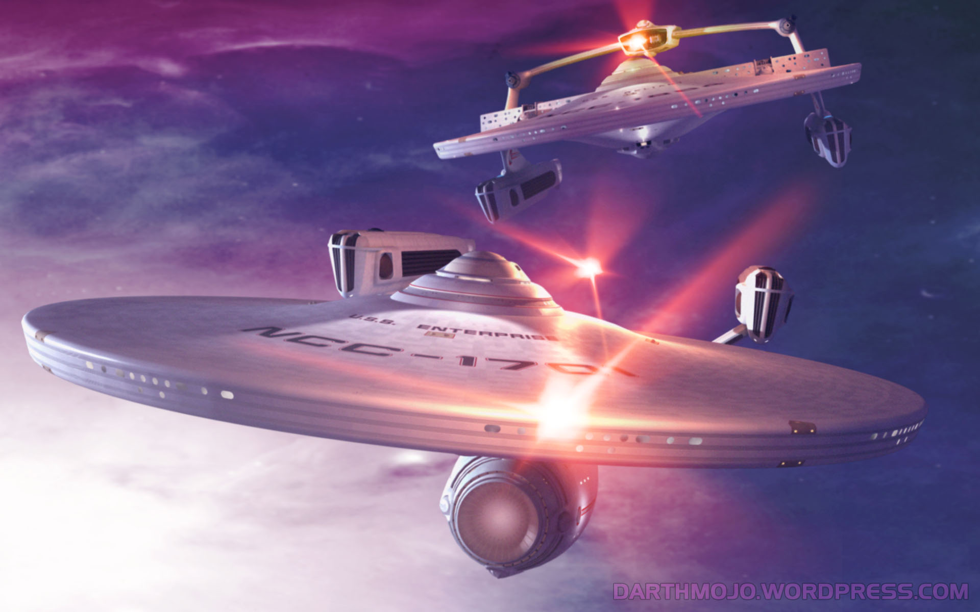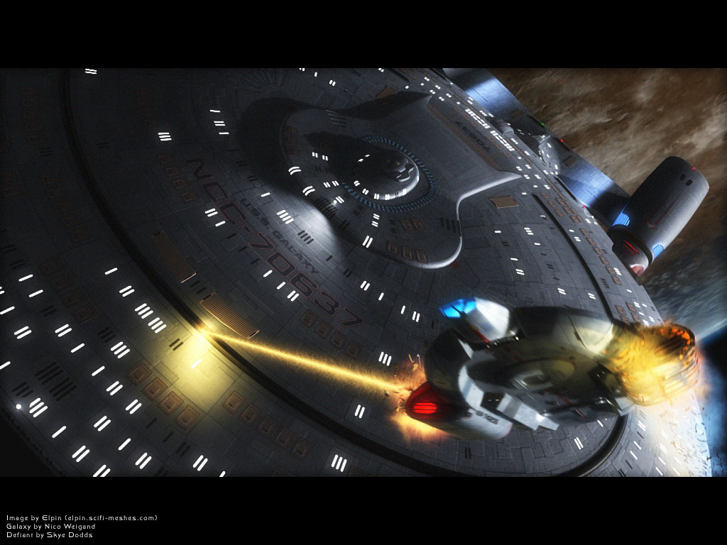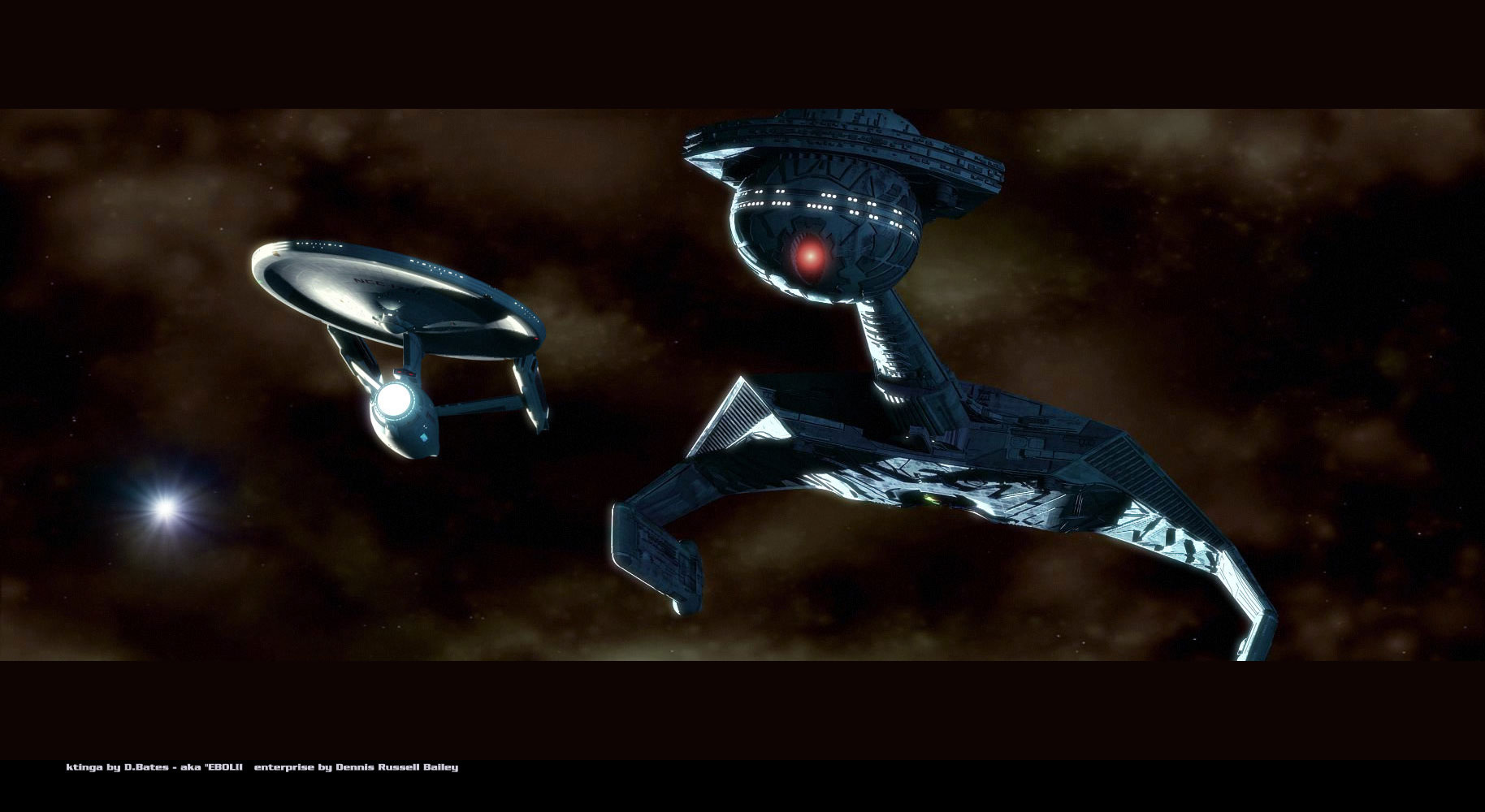 Hab ich vorher gar nicht bemerkt. Da haben die tatsächlich einem ein normale Excelsior vor die Nase gesetzt. Hier sind noch ein paar Desktophintergründe zu den netten lieben und friedfertigen Klingonen und der Föderation: