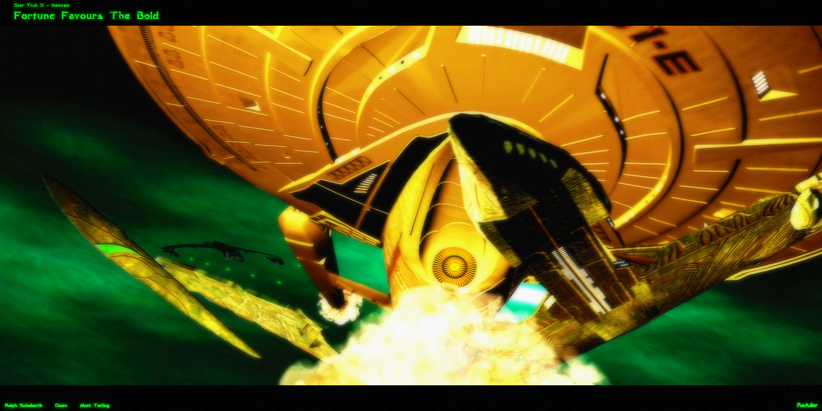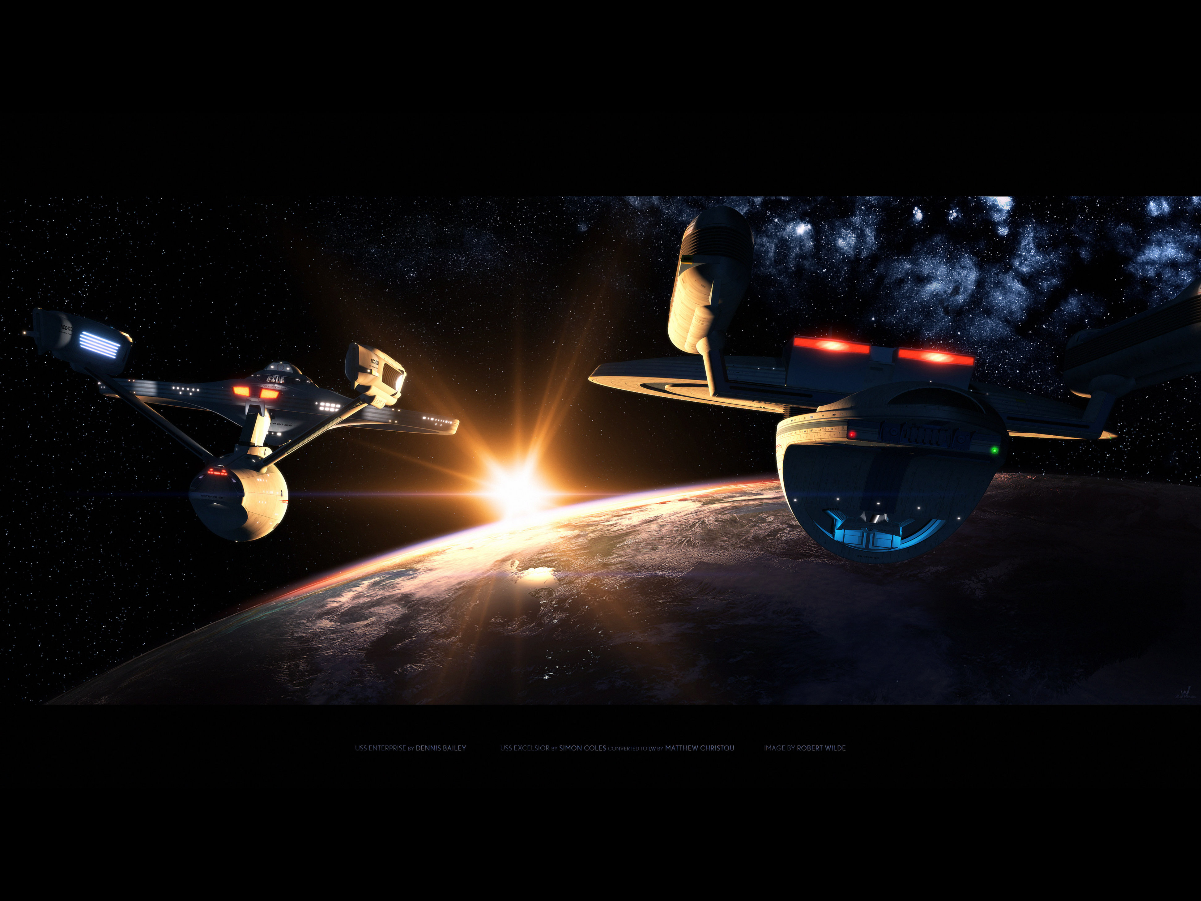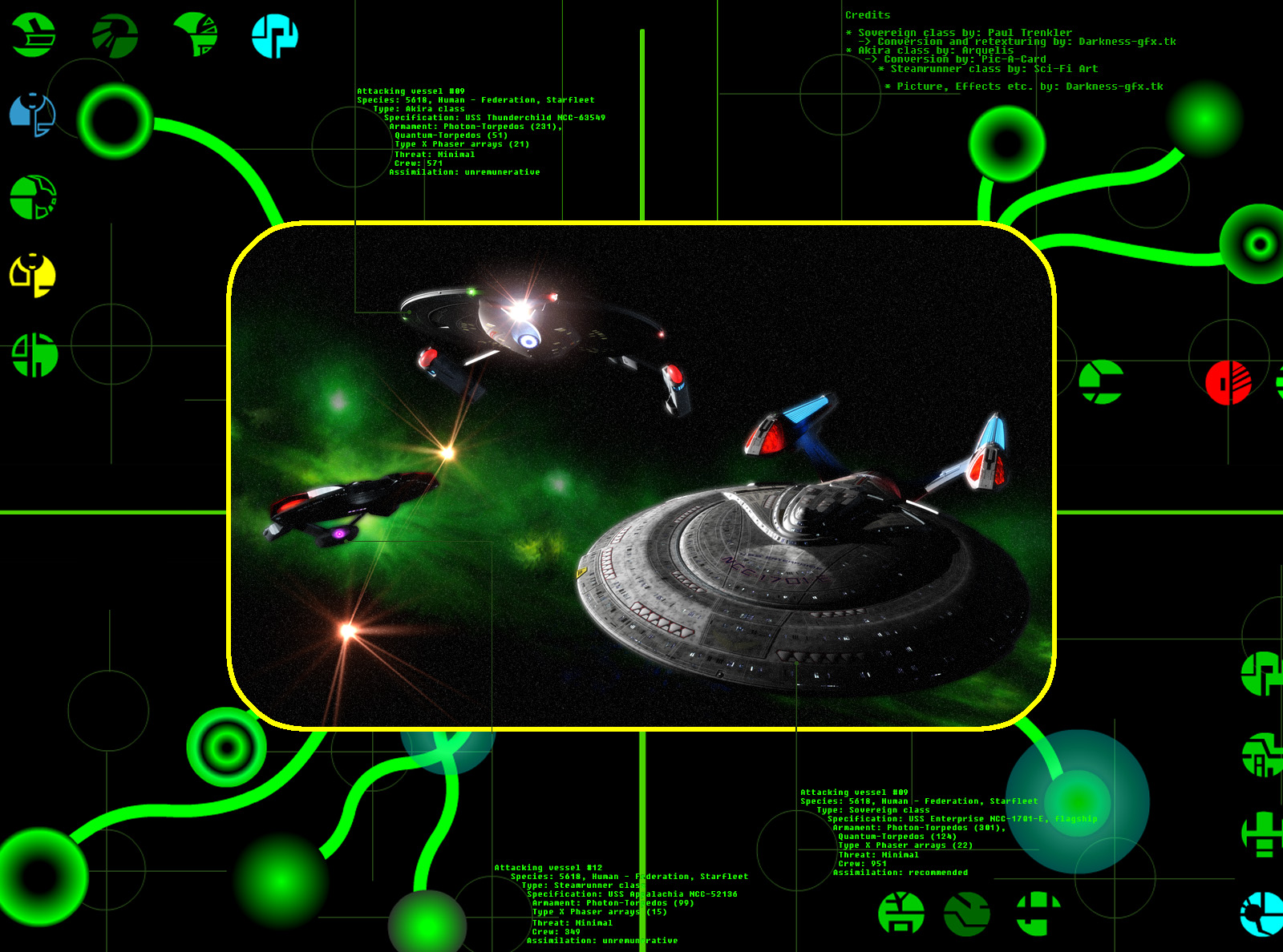 Hab ich vorher gar nicht bemerkt. Da haben die tatsächlich einem ein normale Excelsior vor die Nase gesetzt. Hier sind noch ein paar Desktophintergründe zu den netten lieben und friedfertigen Klingonen und der Föderation: