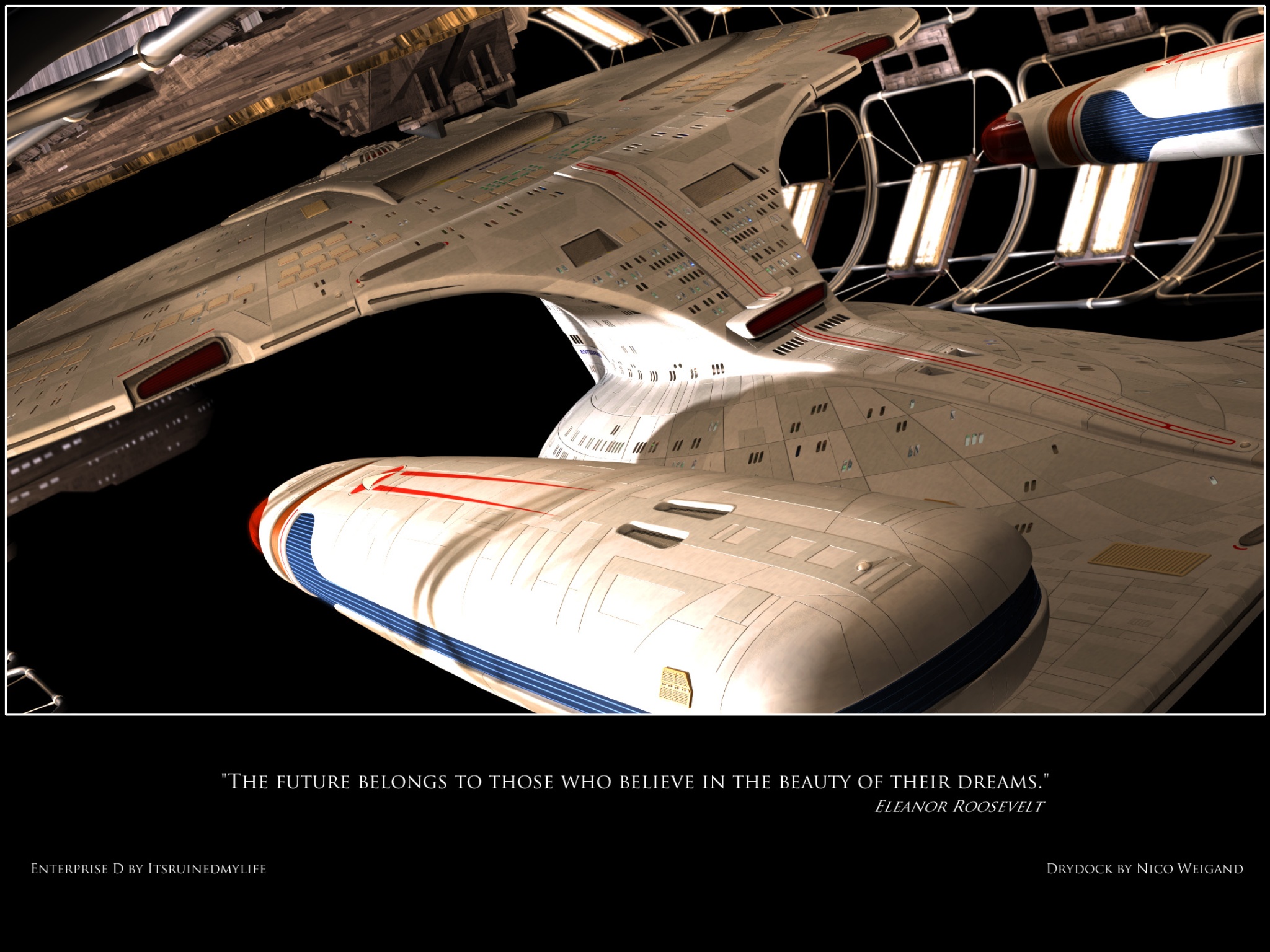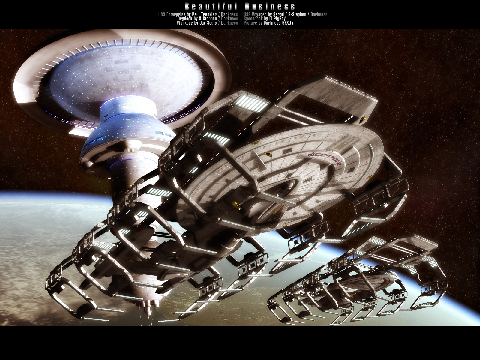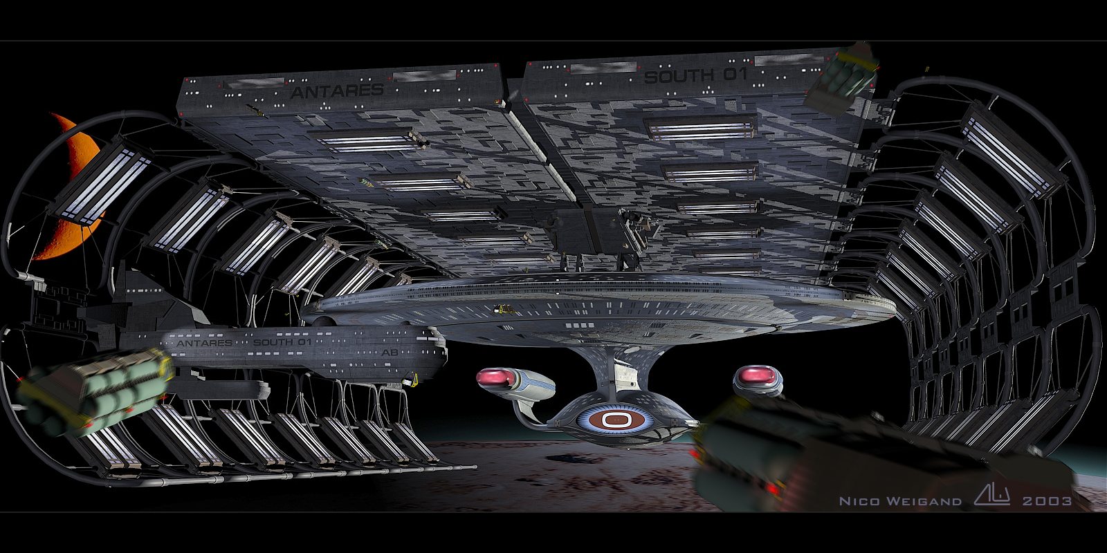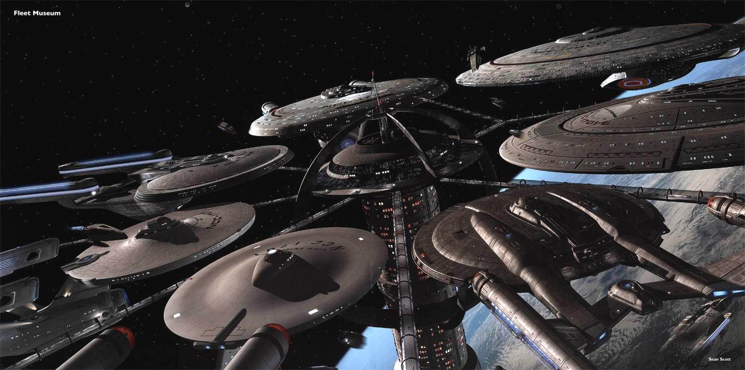 Alle Enterprises an einer Raumstation zu versammeln finde ich eine klasse Idee. Erstens sieht es Sahne aus und zwotens hat man einen schönen Größenvergleich