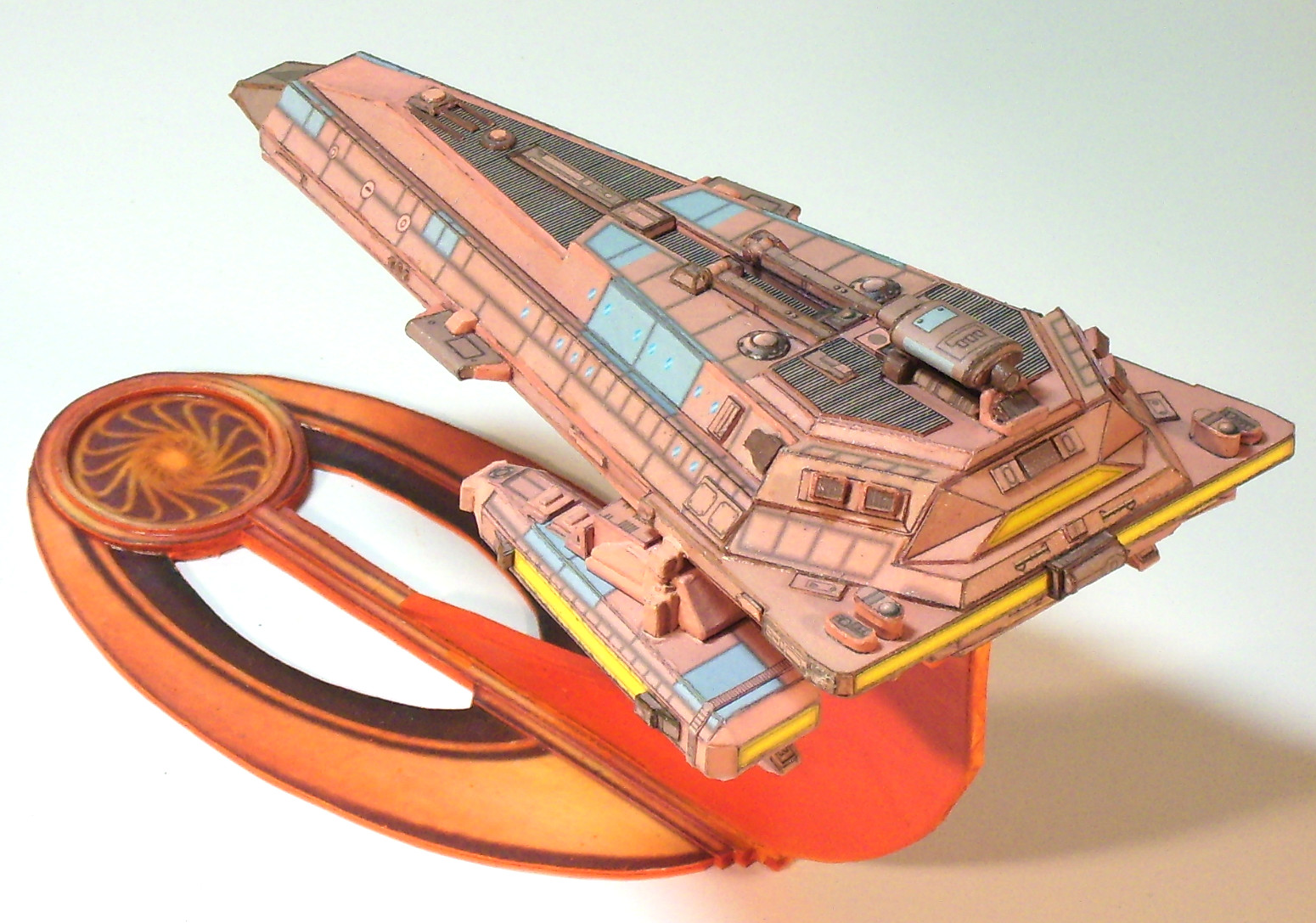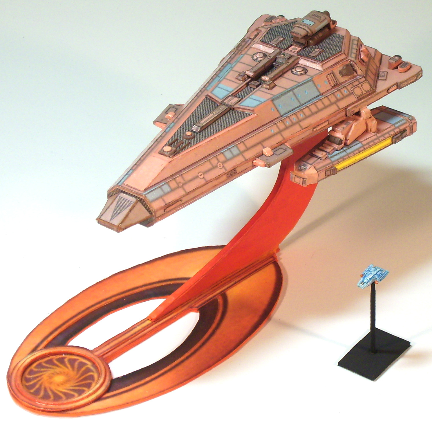 Also wenn die Fakten bei Ex-Astris richtig sind, ist das Original 23Meter lang! Im Maßstab 1/1700 macht das dann 1,35 Zentimeter, also rund 1,4 cm! Mit einer 30° Cutter-Klinge geht das auch noch schön zu schneiden!