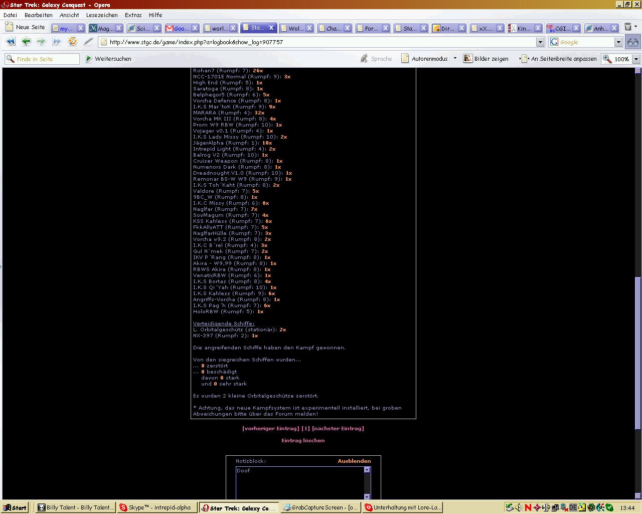 Ok jetzt weis ich wie viel Punkte ihr habt dan schreibt doch mal gleiche euren Namen in STGC dazu dann können wir vielleicht wen ihr wollt ein bündnis bei Diplomti eingehen.