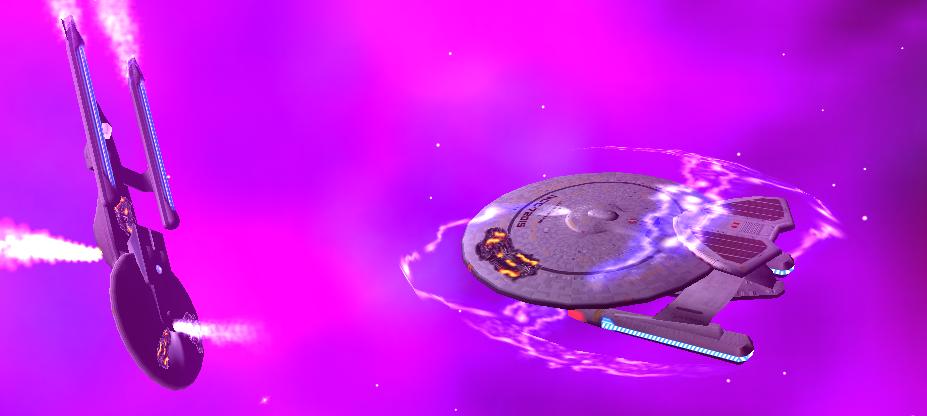 Bild 3: Nach der Schlacht birgt eine Nebula eine schwer beschädigte Excelsior ... ich hab da den HUD rausgeschnitten, weil mir die Szene so gut gefallen hat^^.