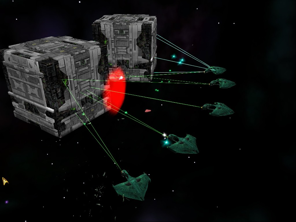Schon wenige Minuten später aber trifft ein großer Schlachtverband der heldenhaften Romulaner-Flotte ein und stampft mit Hilfe modernster Schlachtkreuzer jeglichen Feind-Widerstand brutalst ein: