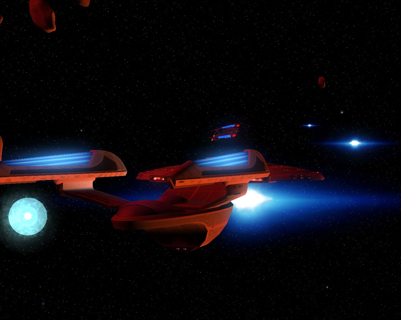 Nach dem Treffer war der Deflektor auch etwas angeschwärzt.Ich hab die DS9FX Missionen unter KM 0.9 gespielt, da läuft es stabiler.