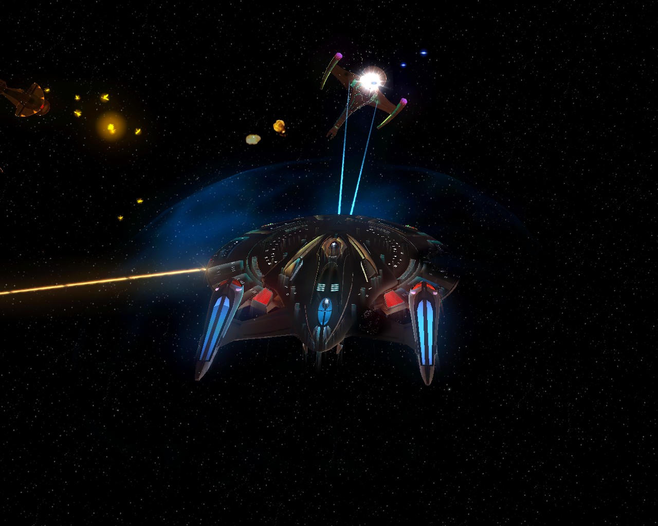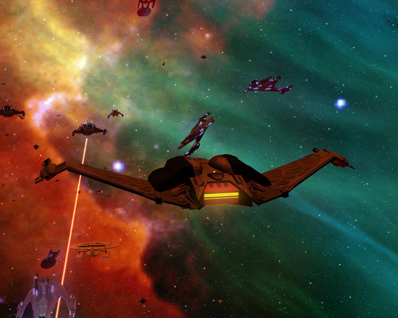 Diesmal gibt es einen Screenshot zu einem neuen Klingonischen D4 Kreuzer der sich mit den Romulanern ein Gefecht liefert.