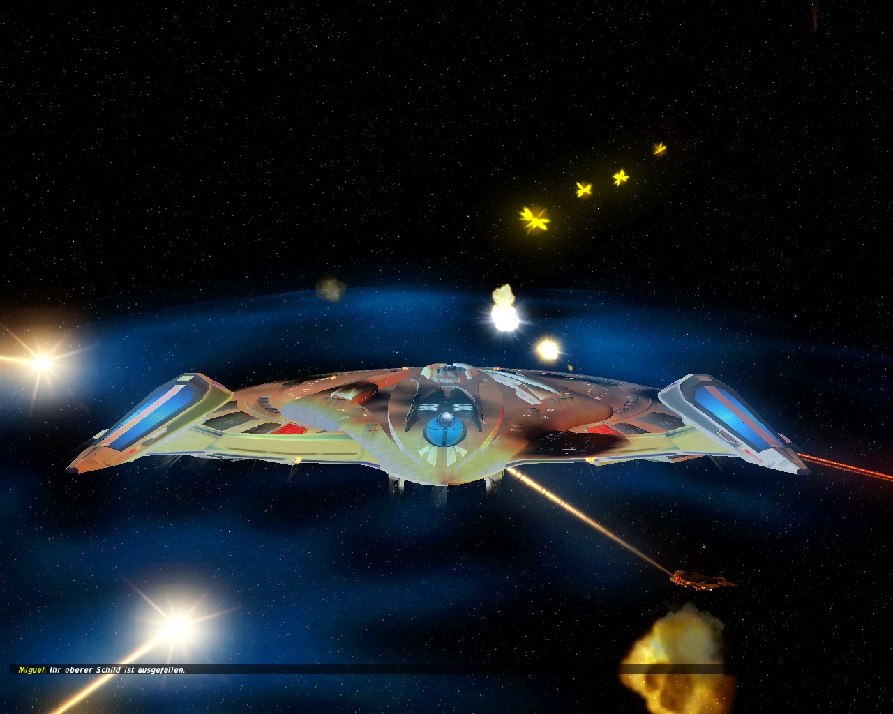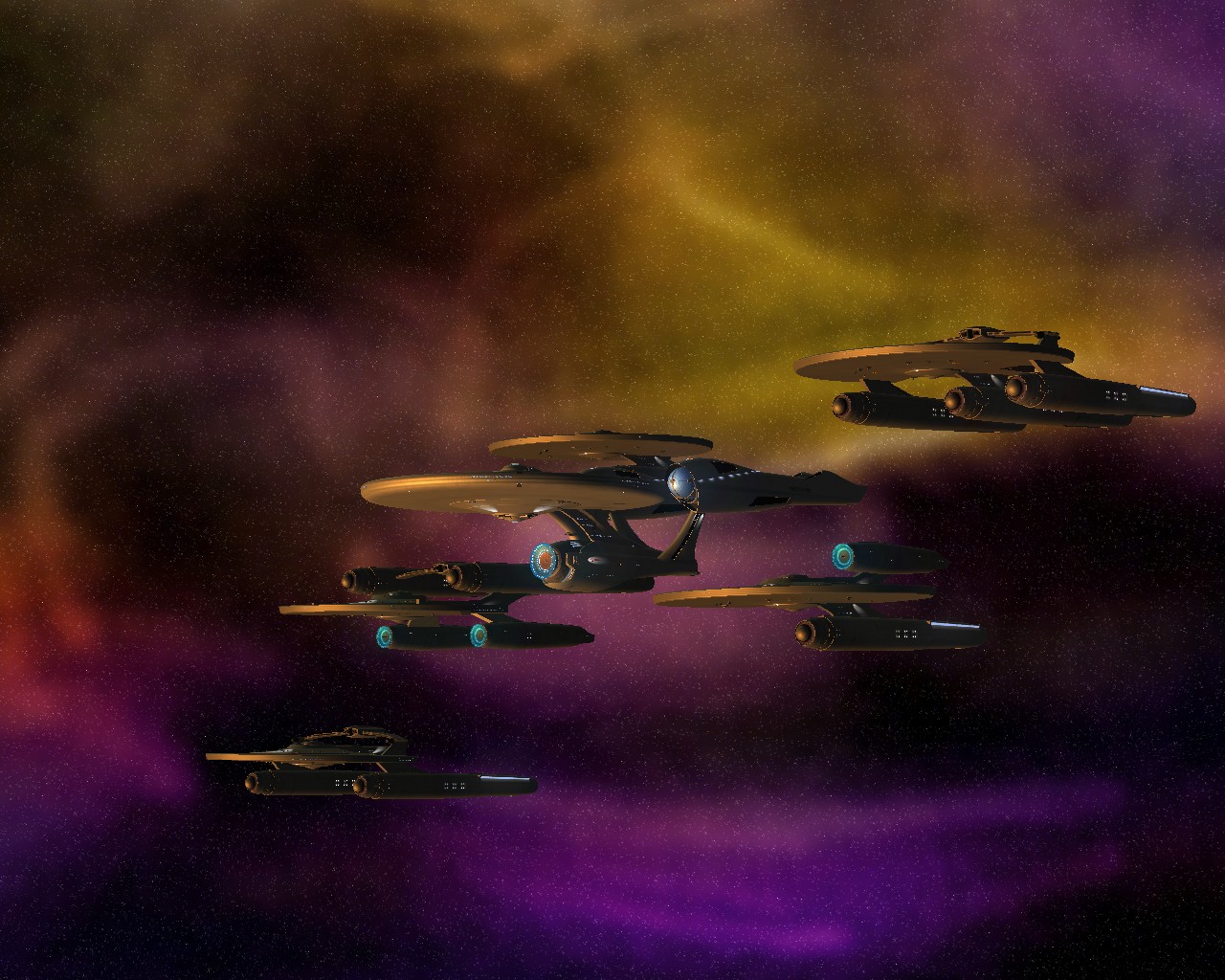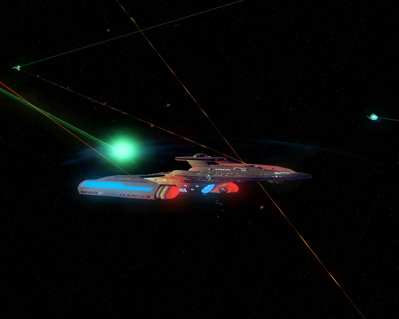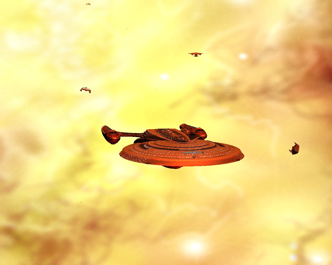 Was die Miranda Classe angeht, das Bild sieht nicht ganz so toll aus, da sich nur das Spielerschiff im Warptransfer befindet und die beiden anderen einfach nur im All sind.