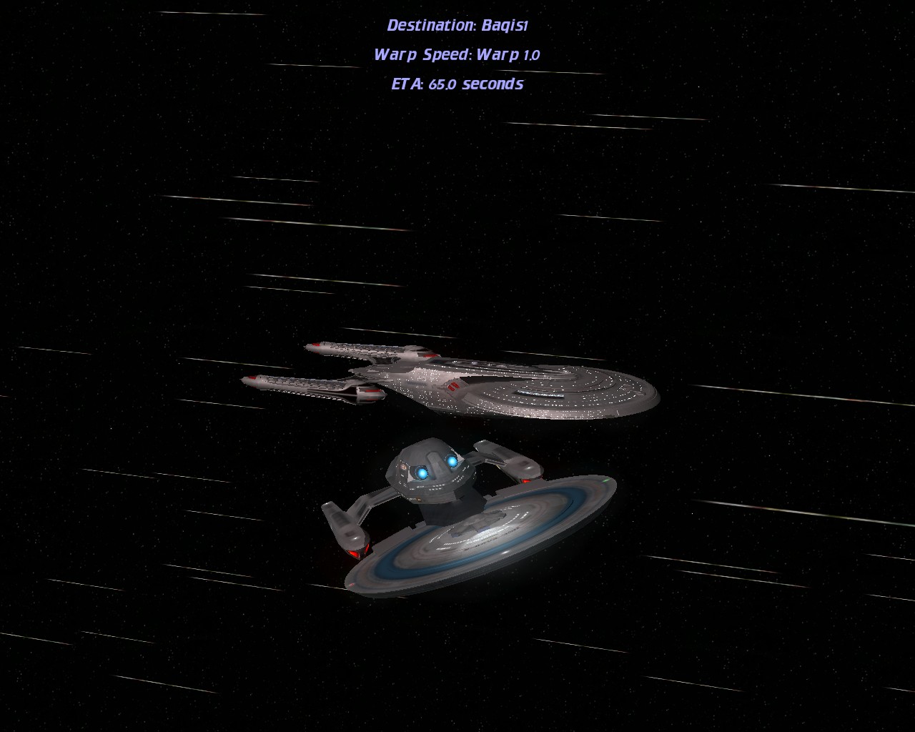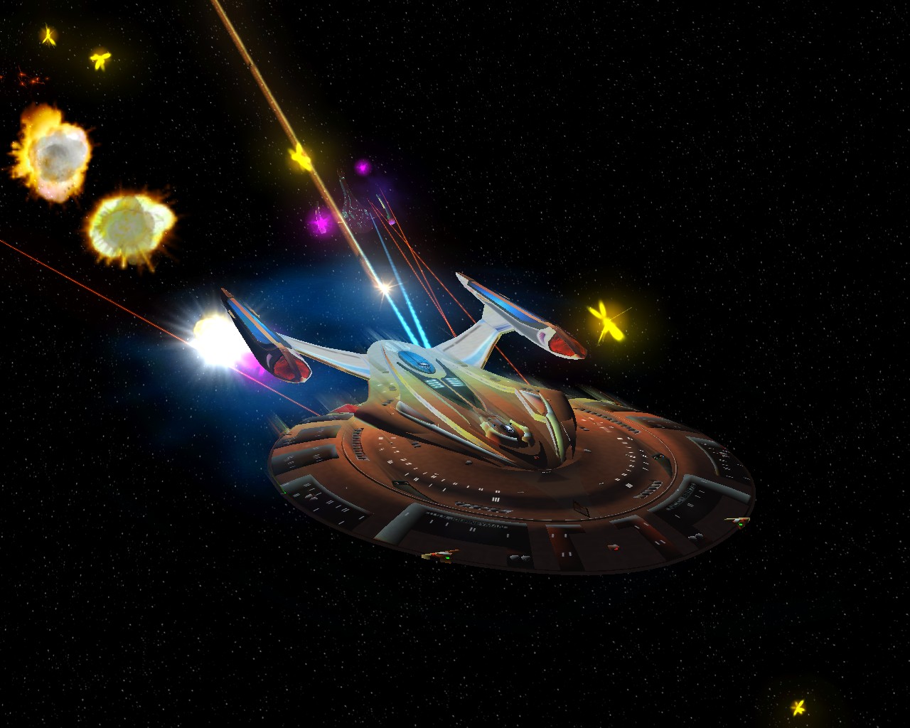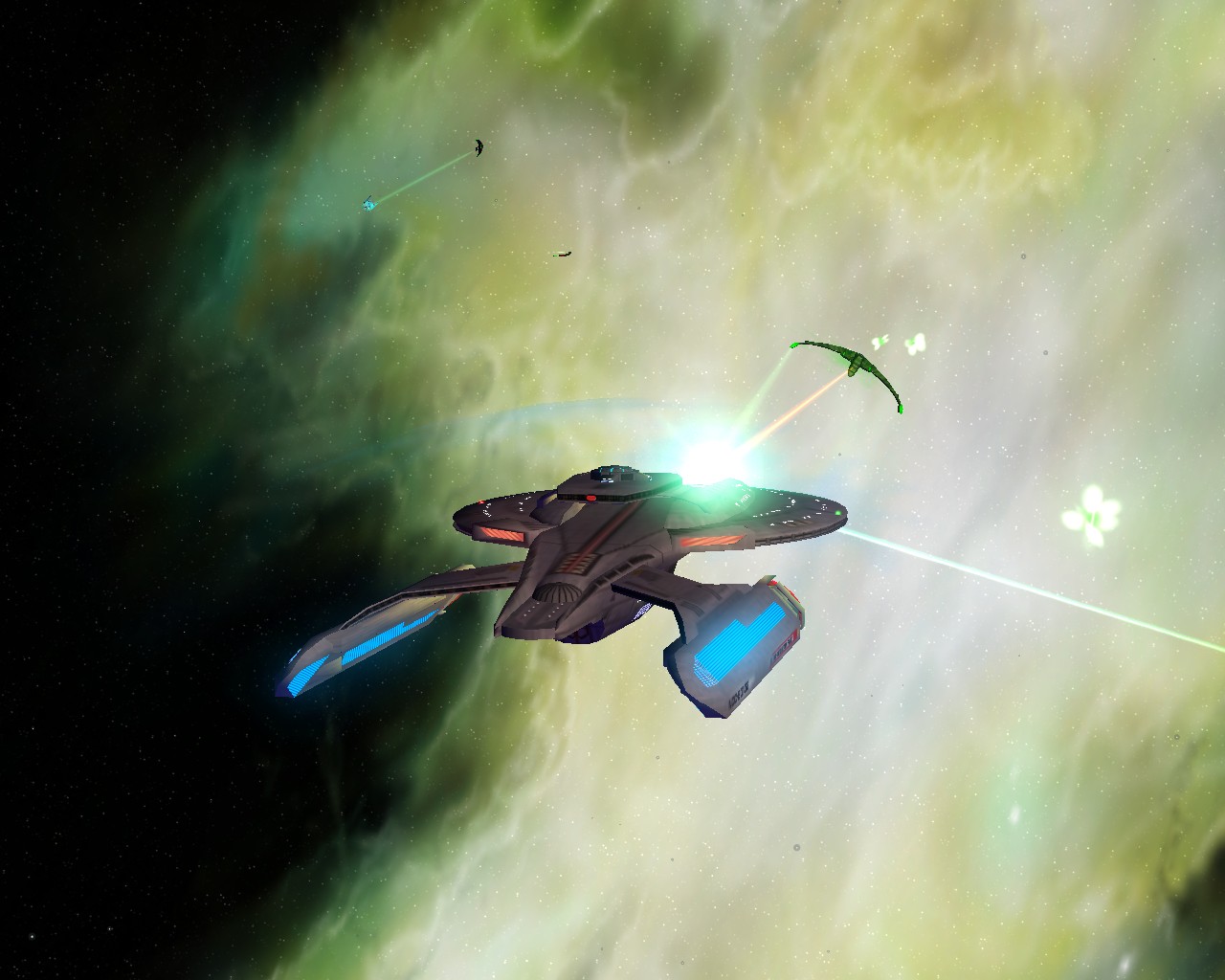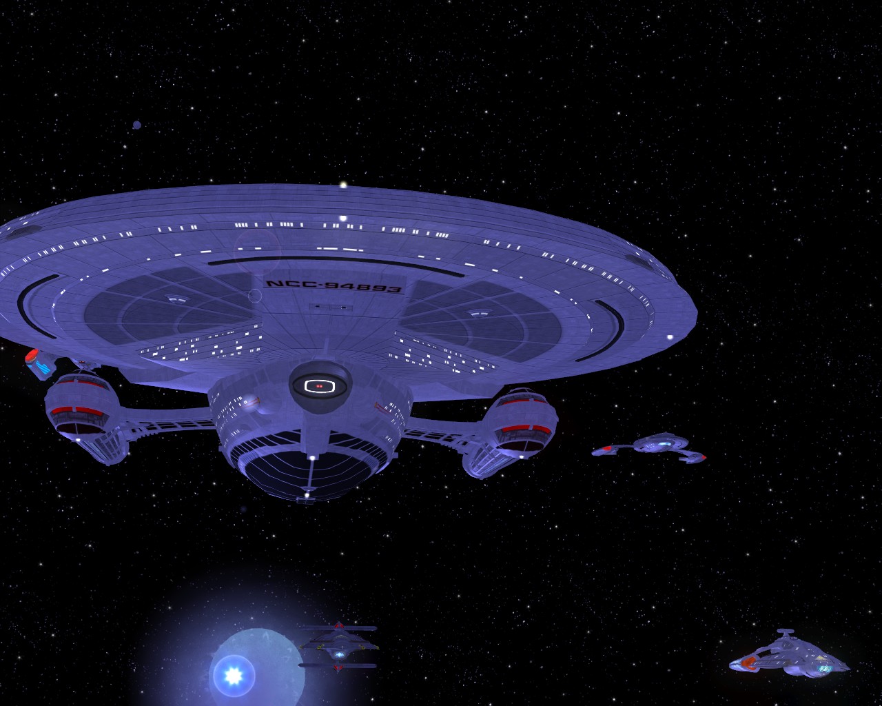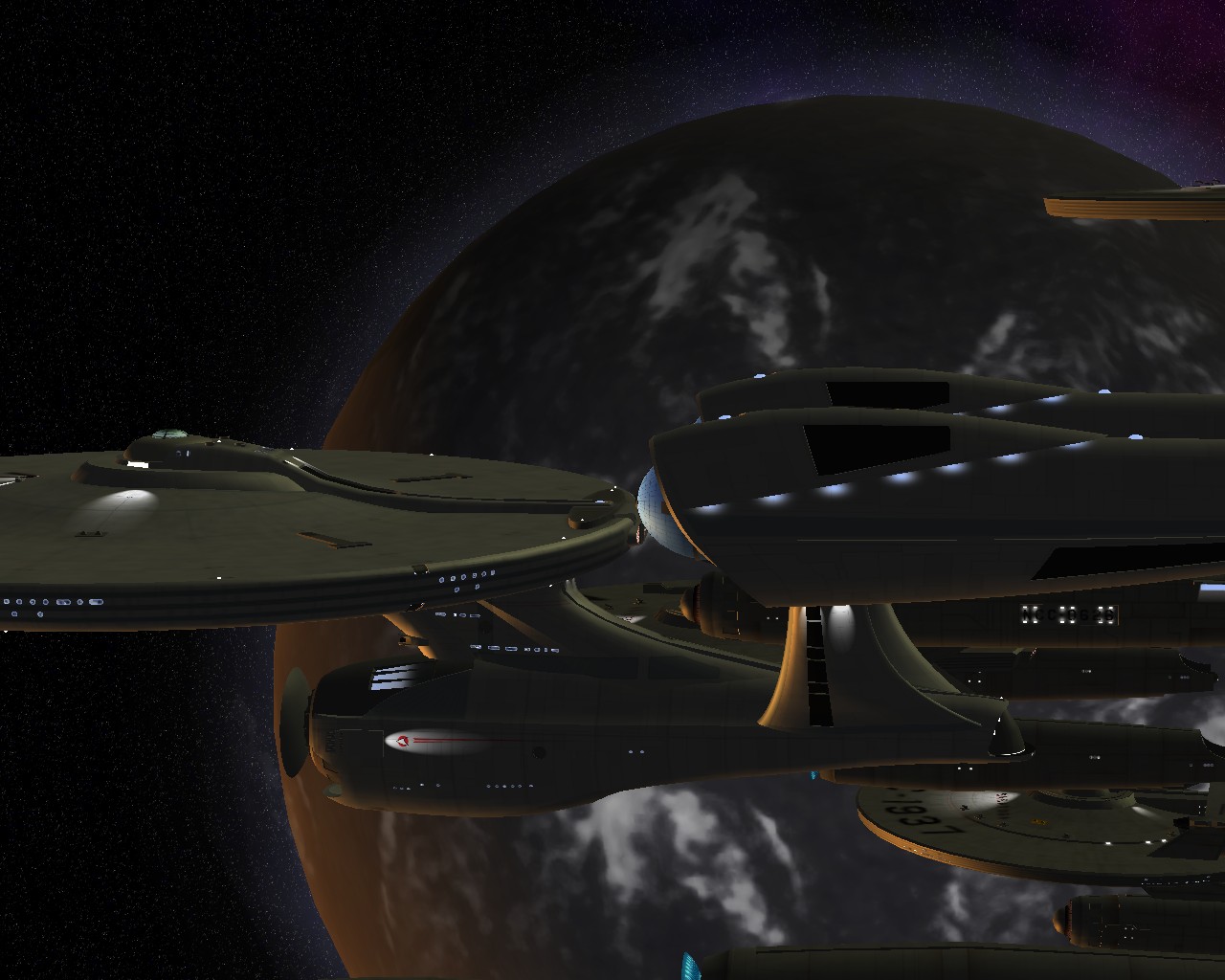 Was die Miranda Classe angeht, das Bild sieht nicht ganz so toll aus, da sich nur das Spielerschiff im Warptransfer befindet und die beiden anderen einfach nur im All sind.