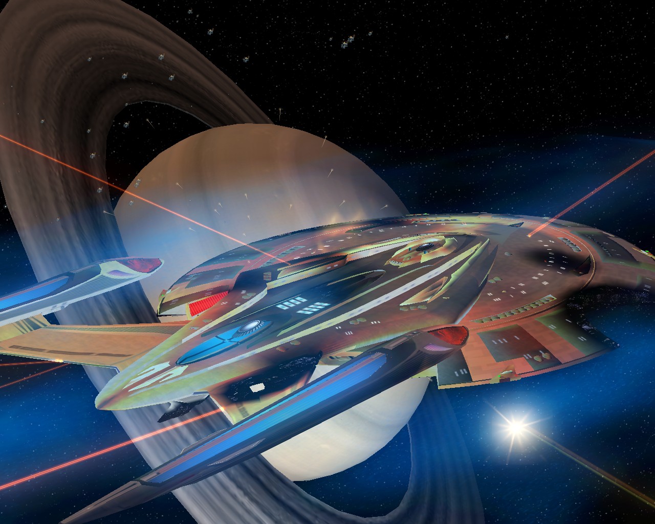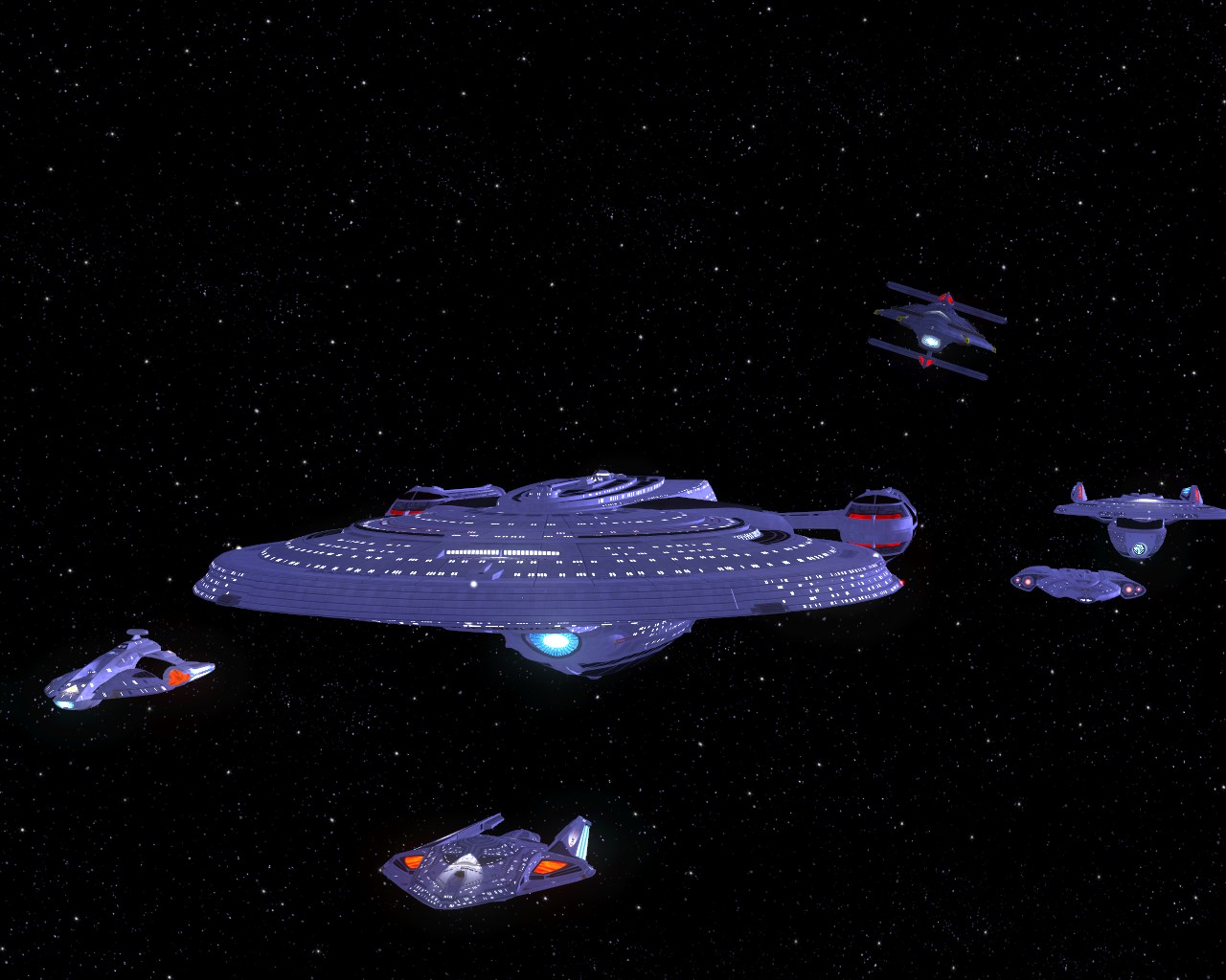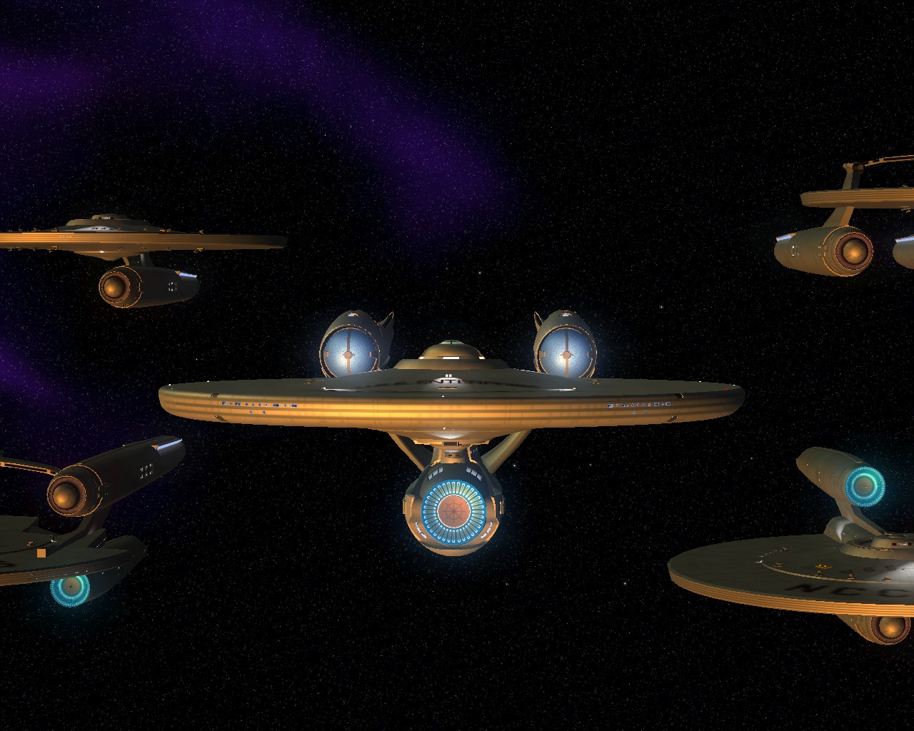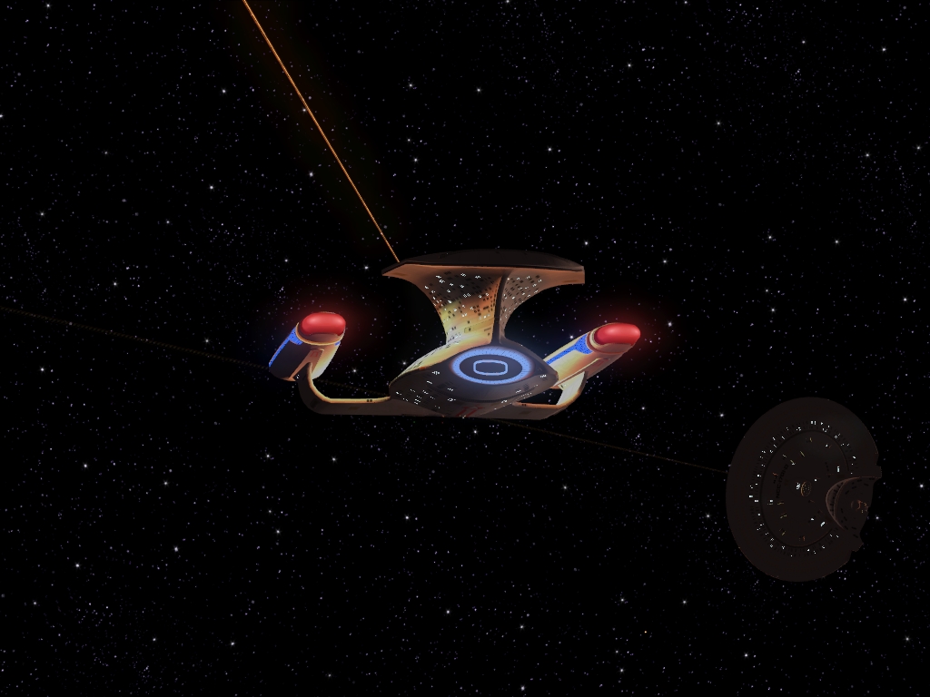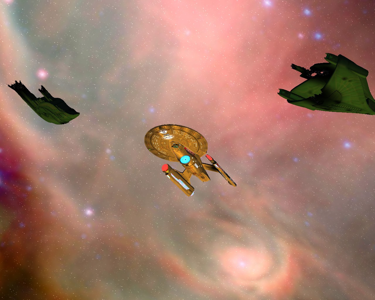 Was die Miranda Classe angeht, das Bild sieht nicht ganz so toll aus, da sich nur das Spielerschiff im Warptransfer befindet und die beiden anderen einfach nur im All sind.