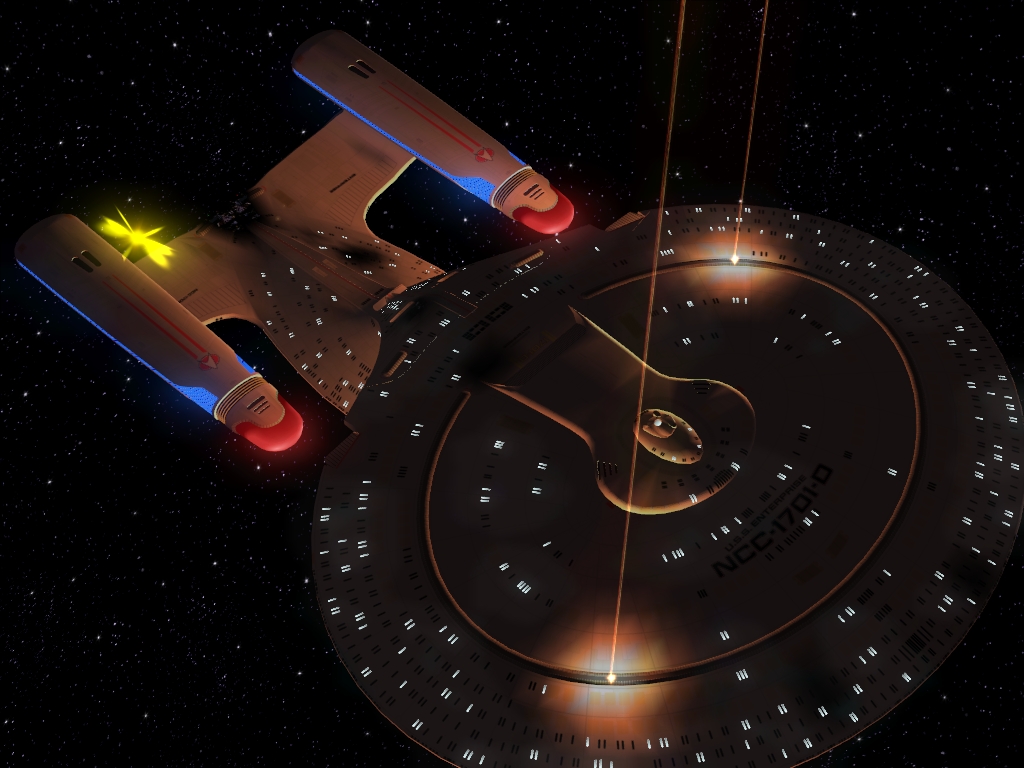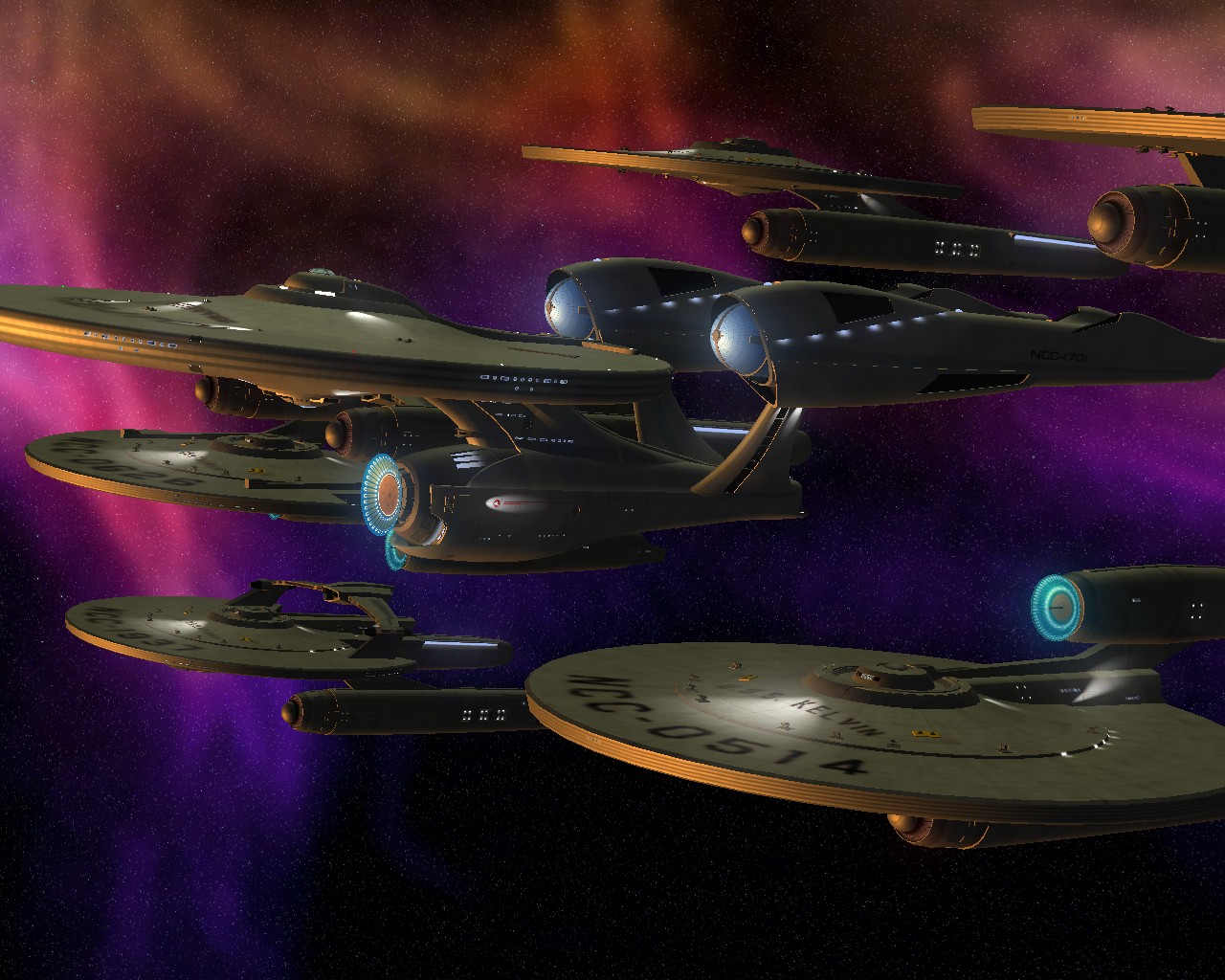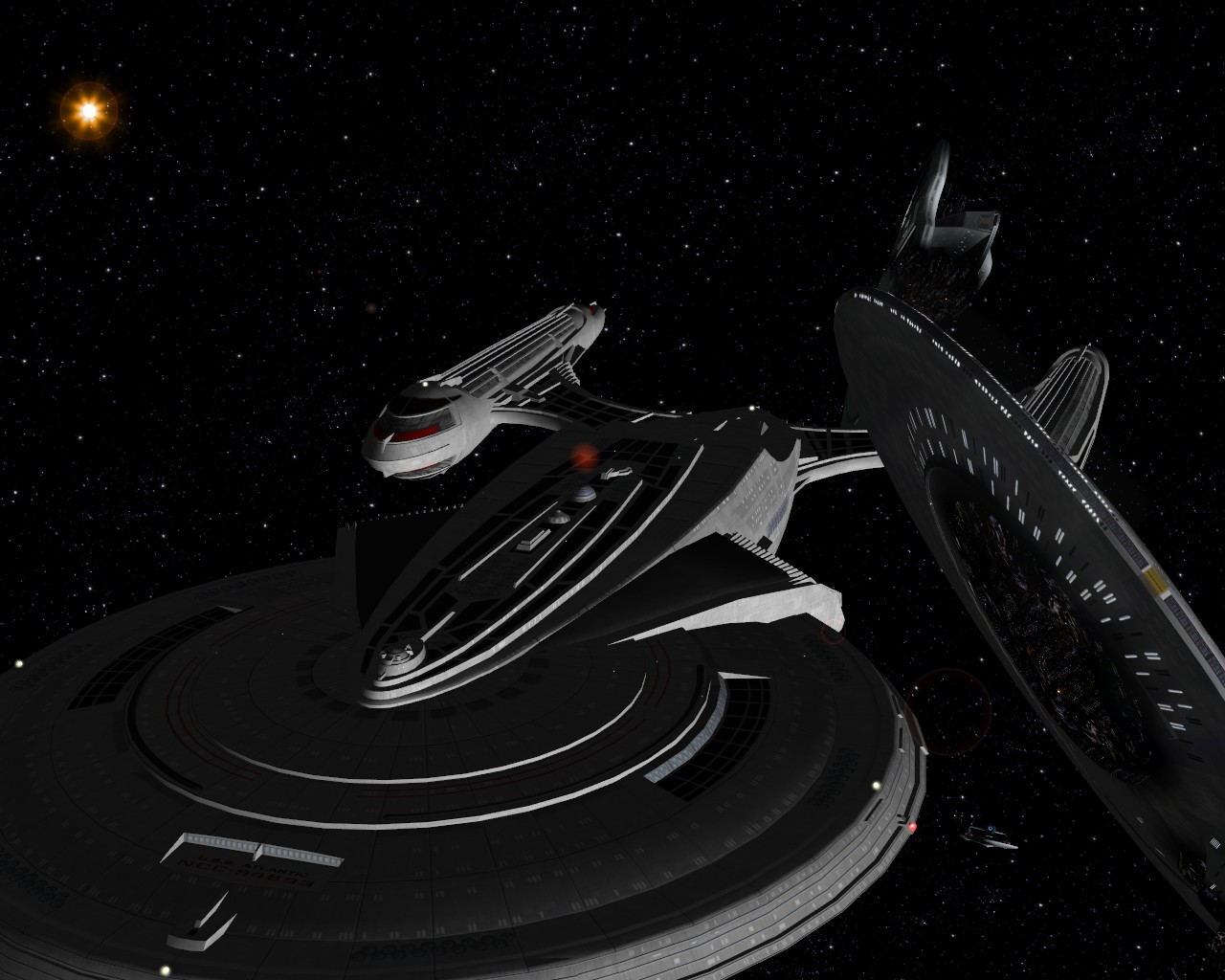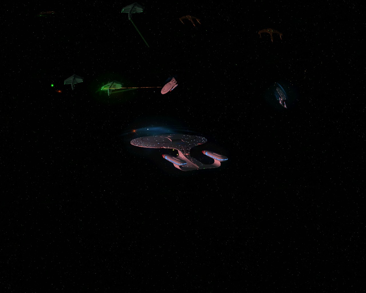 Was die Miranda Classe angeht, das Bild sieht nicht ganz so toll aus, da sich nur das Spielerschiff im Warptransfer befindet und die beiden anderen einfach nur im All sind.