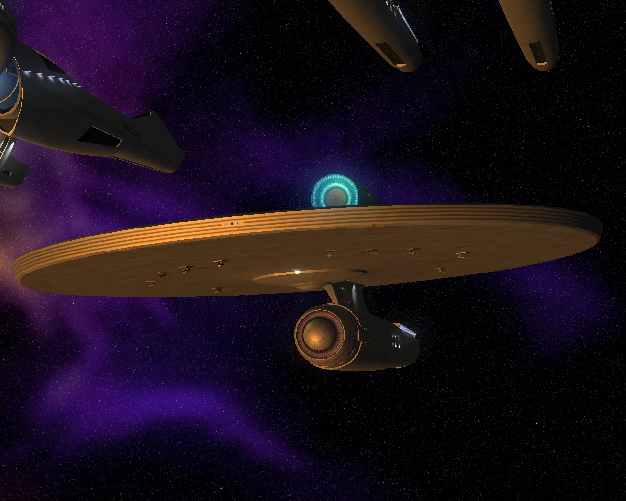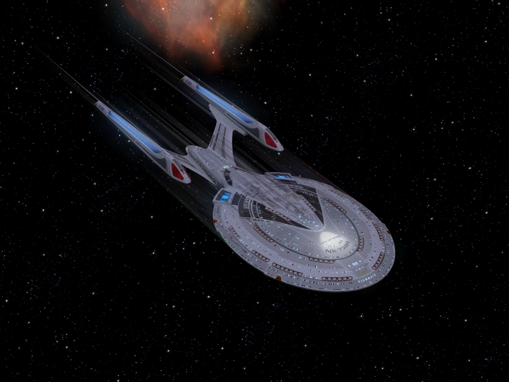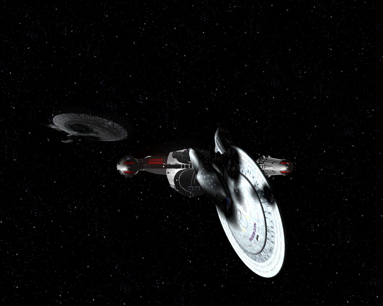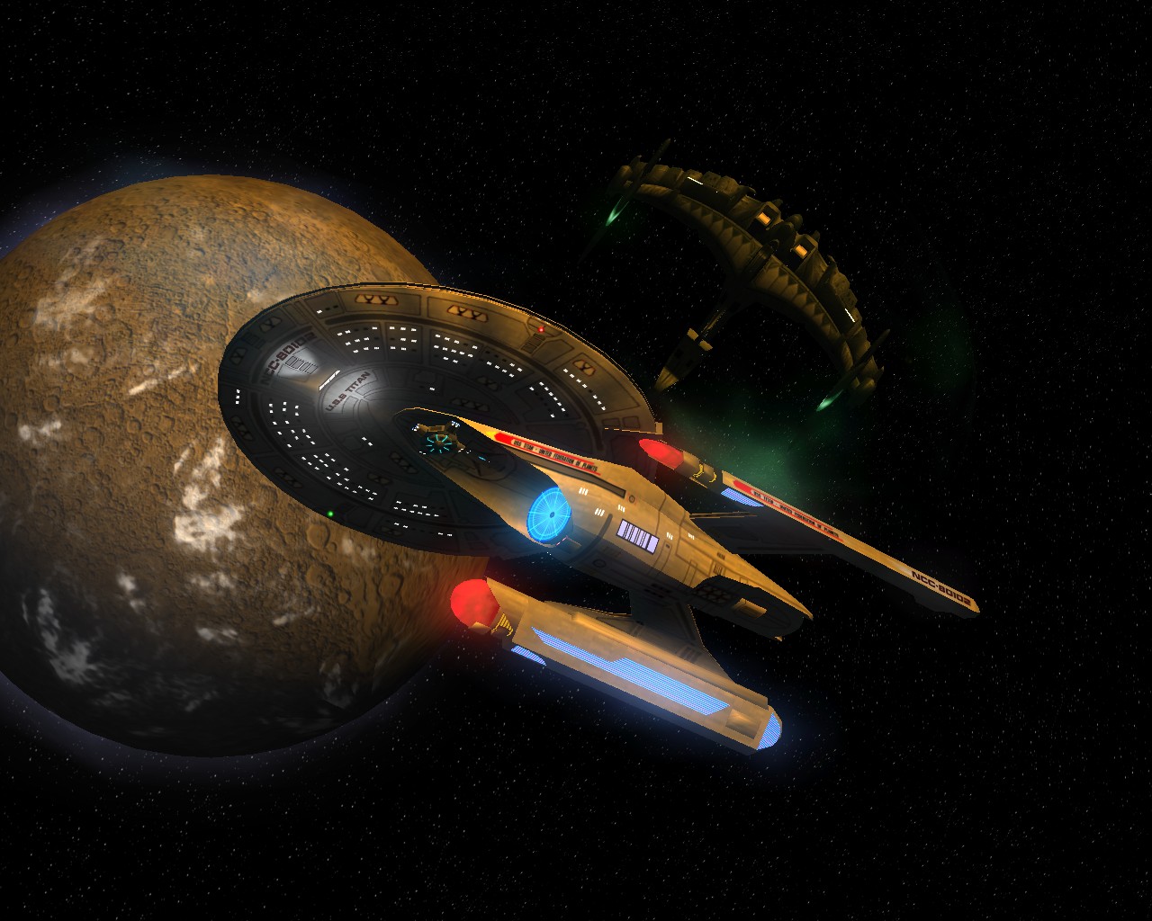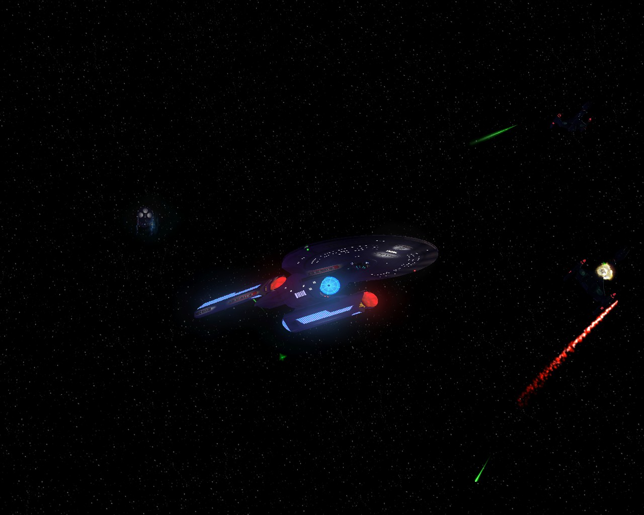 Was die Miranda Classe angeht, das Bild sieht nicht ganz so toll aus, da sich nur das Spielerschiff im Warptransfer befindet und die beiden anderen einfach nur im All sind.