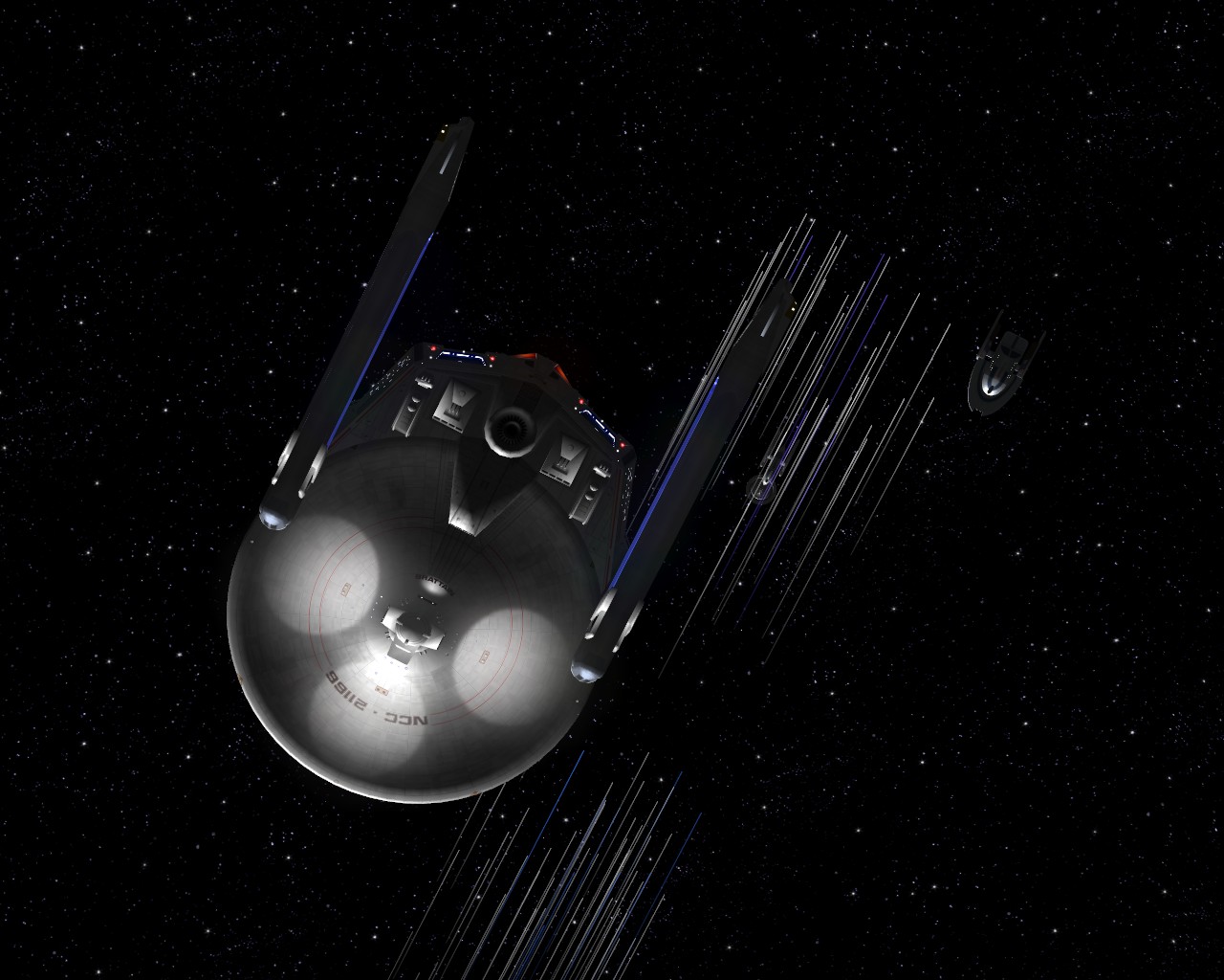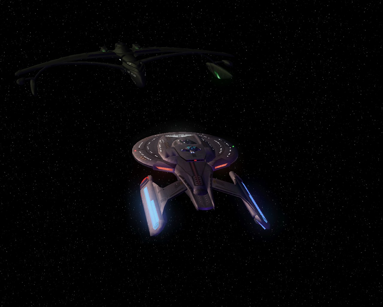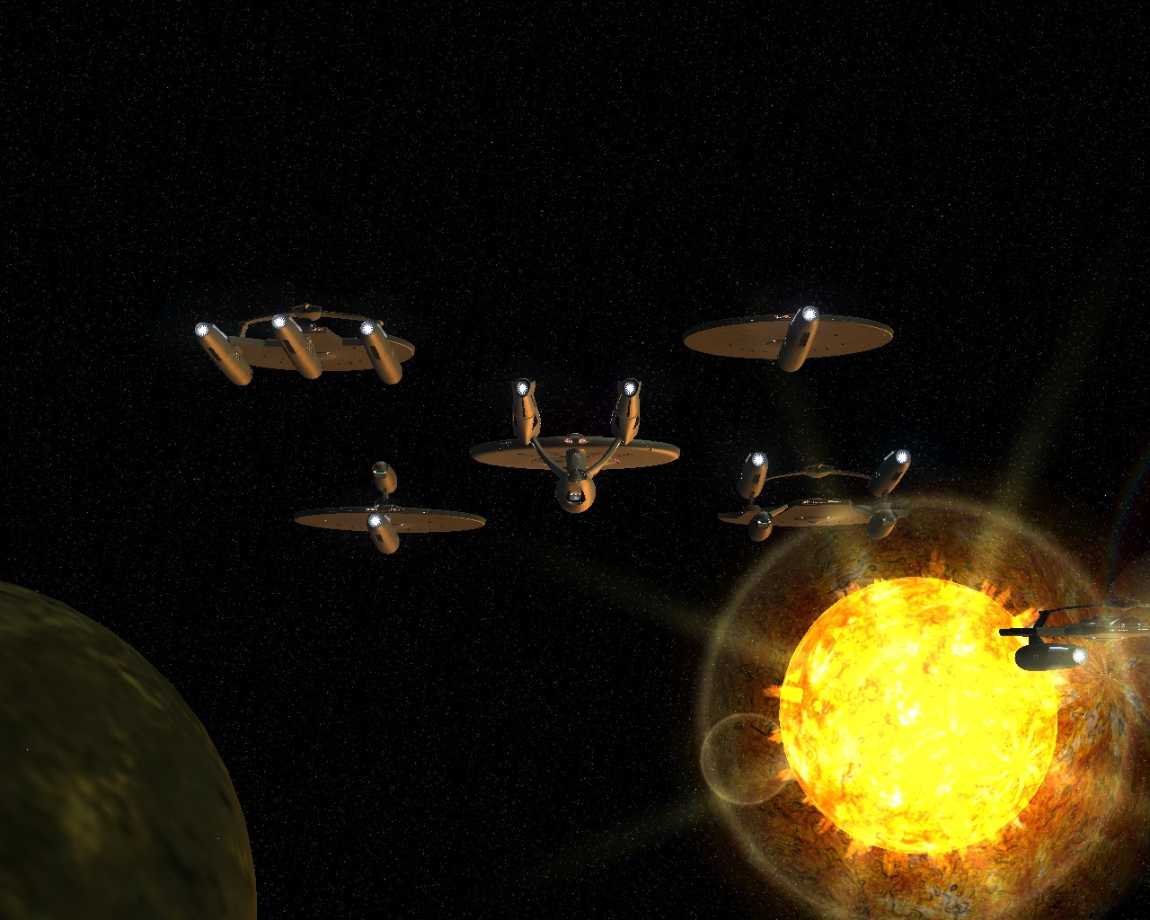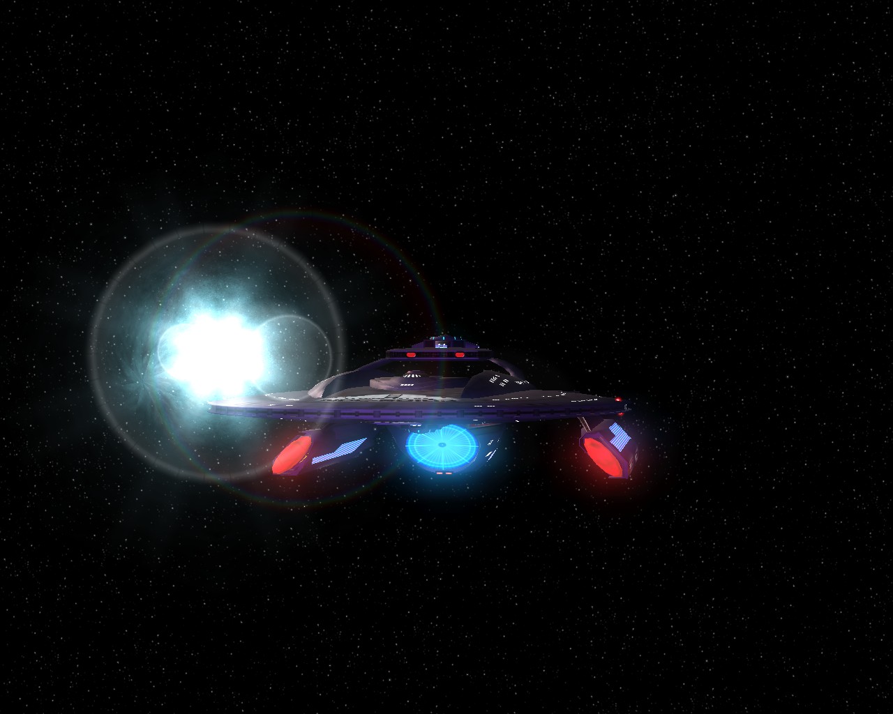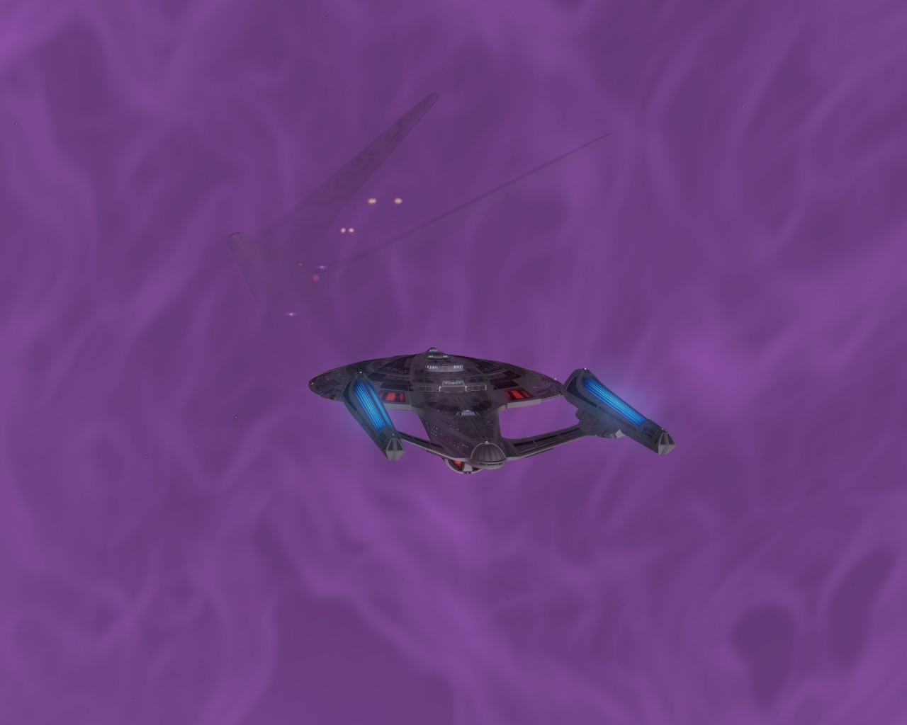 Was die Miranda Classe angeht, das Bild sieht nicht ganz so toll aus, da sich nur das Spielerschiff im Warptransfer befindet und die beiden anderen einfach nur im All sind.Inmitten des ewigen Kreislaufs der Zeit, wird aus lauem Wind ein Sturm entstehen.