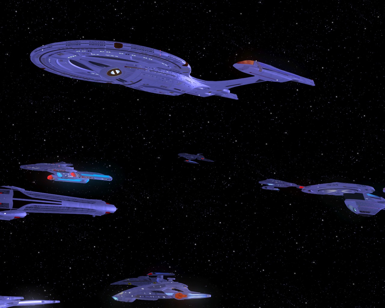 Früher sind Flotten während des Warpfluges immer schön dicht zusammen geblieben. Beispiel: Bridge Commander - Community