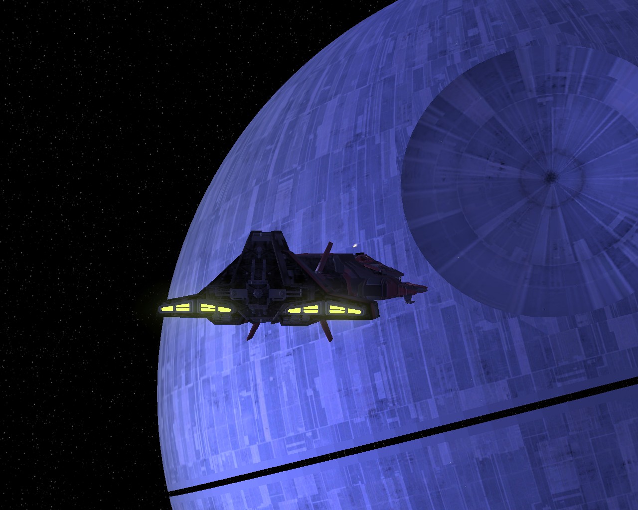 In der Geschichte sollte es so sein, dass der Sith Lord, nach der Vernichtung seines Flaggschiffes und fast seiner gesamten Flotte, zu einem letzten Schlag mit der neuen Superwaffe dem Todesstern ausholt um das Antikerschiff mit dem Gebündelten Laserstrahl zu vernichten.