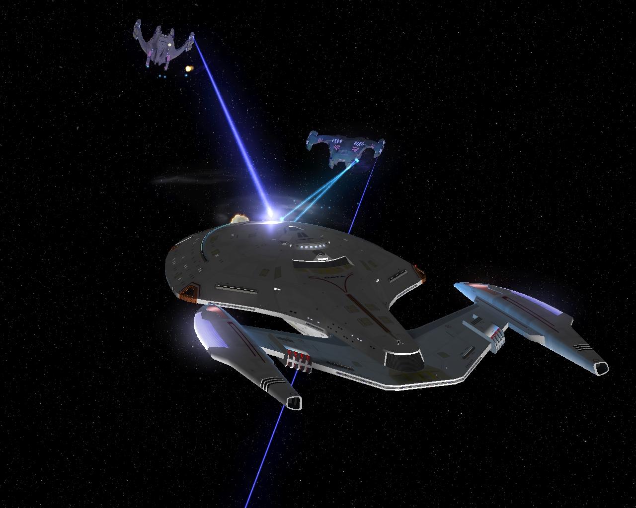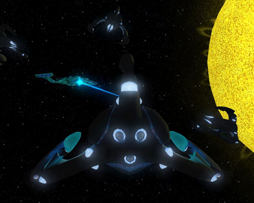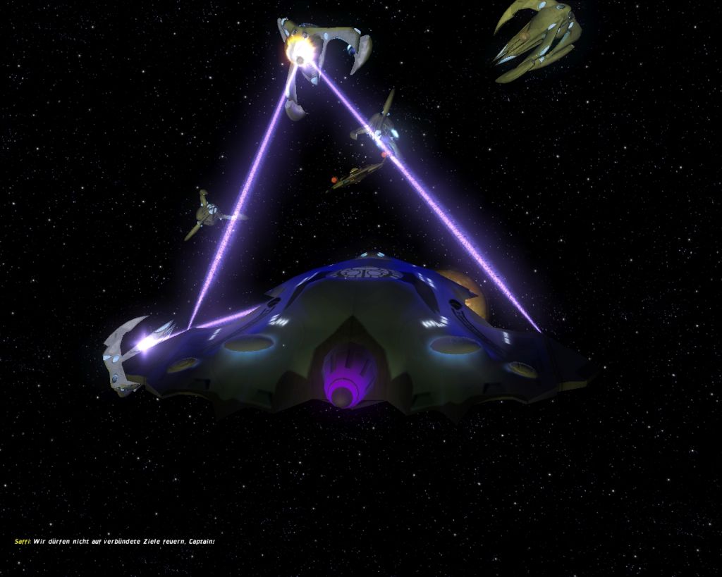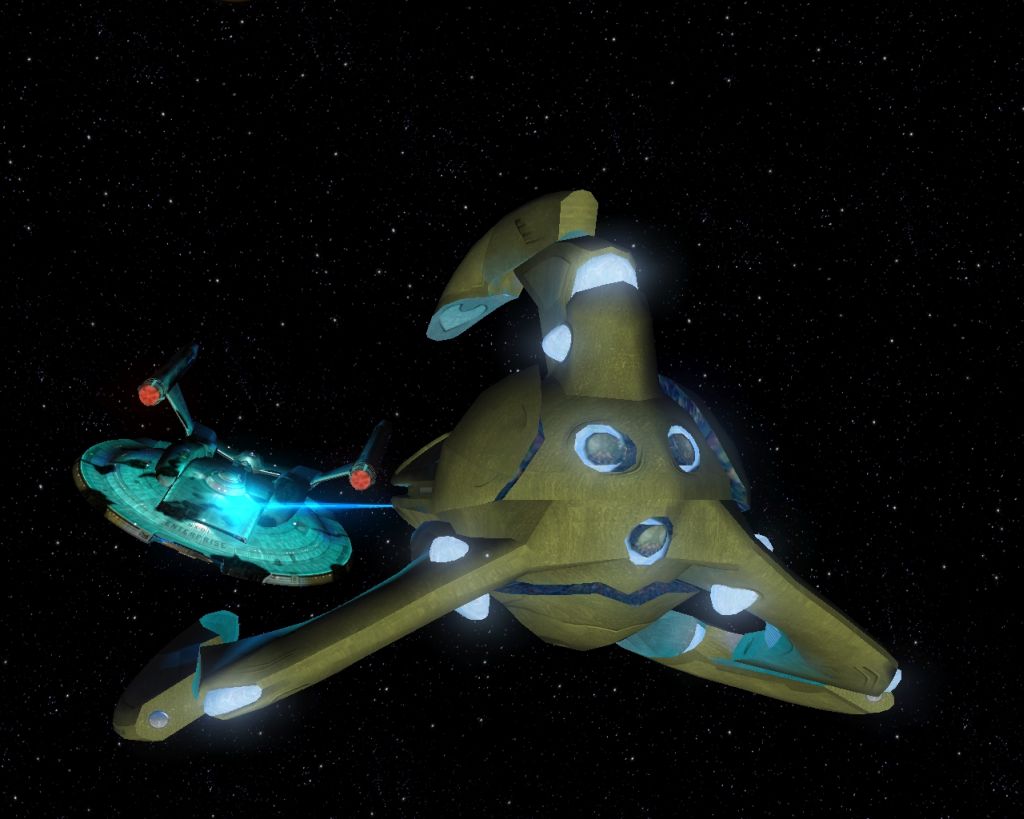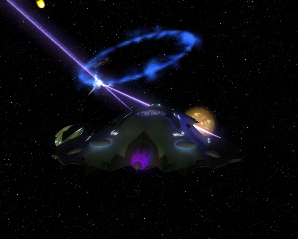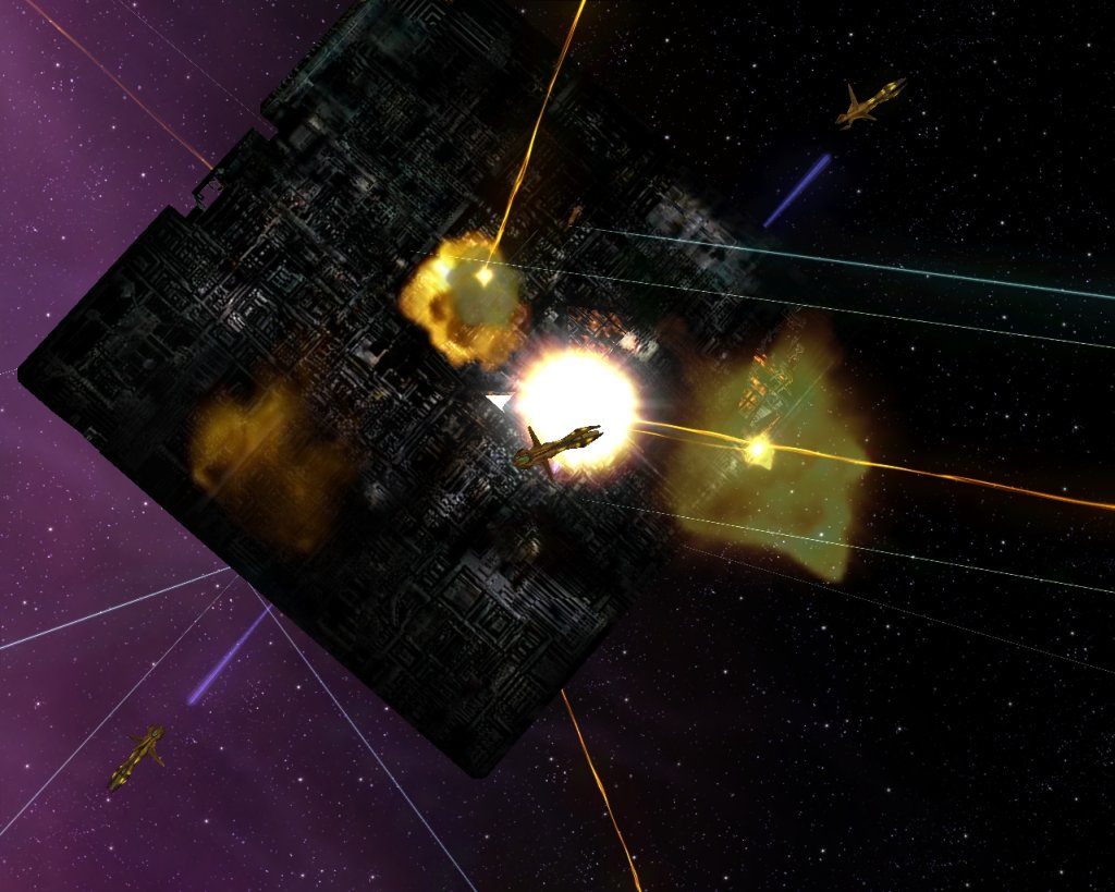 Hier hab ich noch ein paar Screenshots wo ich mit einer Flotte von Spezies 8472 einen sonst unzerstörbaren Kubus angreife. Man konnte ihn auch nur vernichten indem man seinen Energiekern oder wie man das bei den Borg auch nennt zerstört.