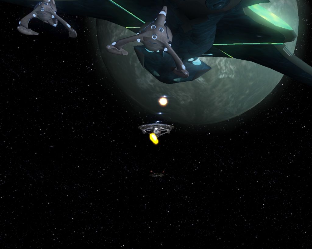 Die Bilder sieben bis sechzehn sind von der NCC-05 Atlantis, die im Krieg gegen die Romulaner von fünf Pretos Warbirds umstellt wird, doch dann sich noch einen weg freischießen kann. Über den Konflikt der frühen Sternenflotte mit dem Romulanischen Sternenimperium, erfährt man sehr viel in den ersten Kampagnen von Star Trek Legacy.