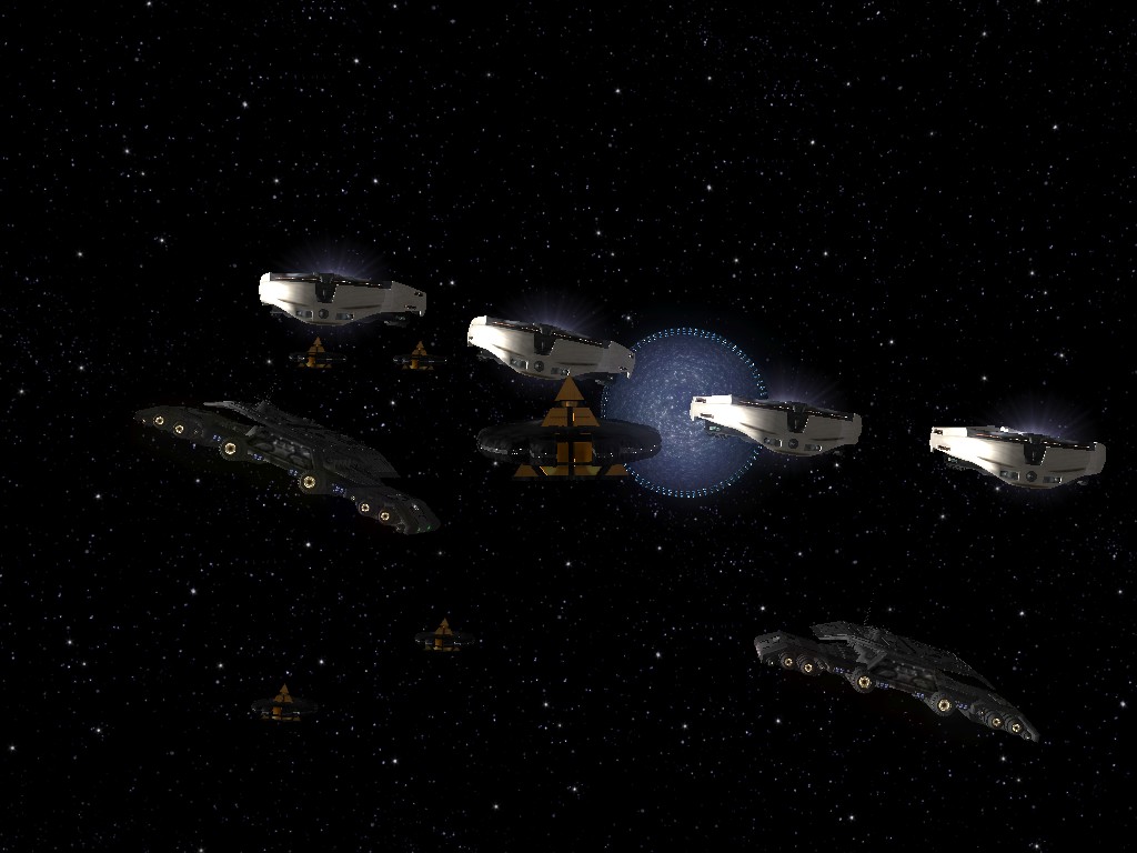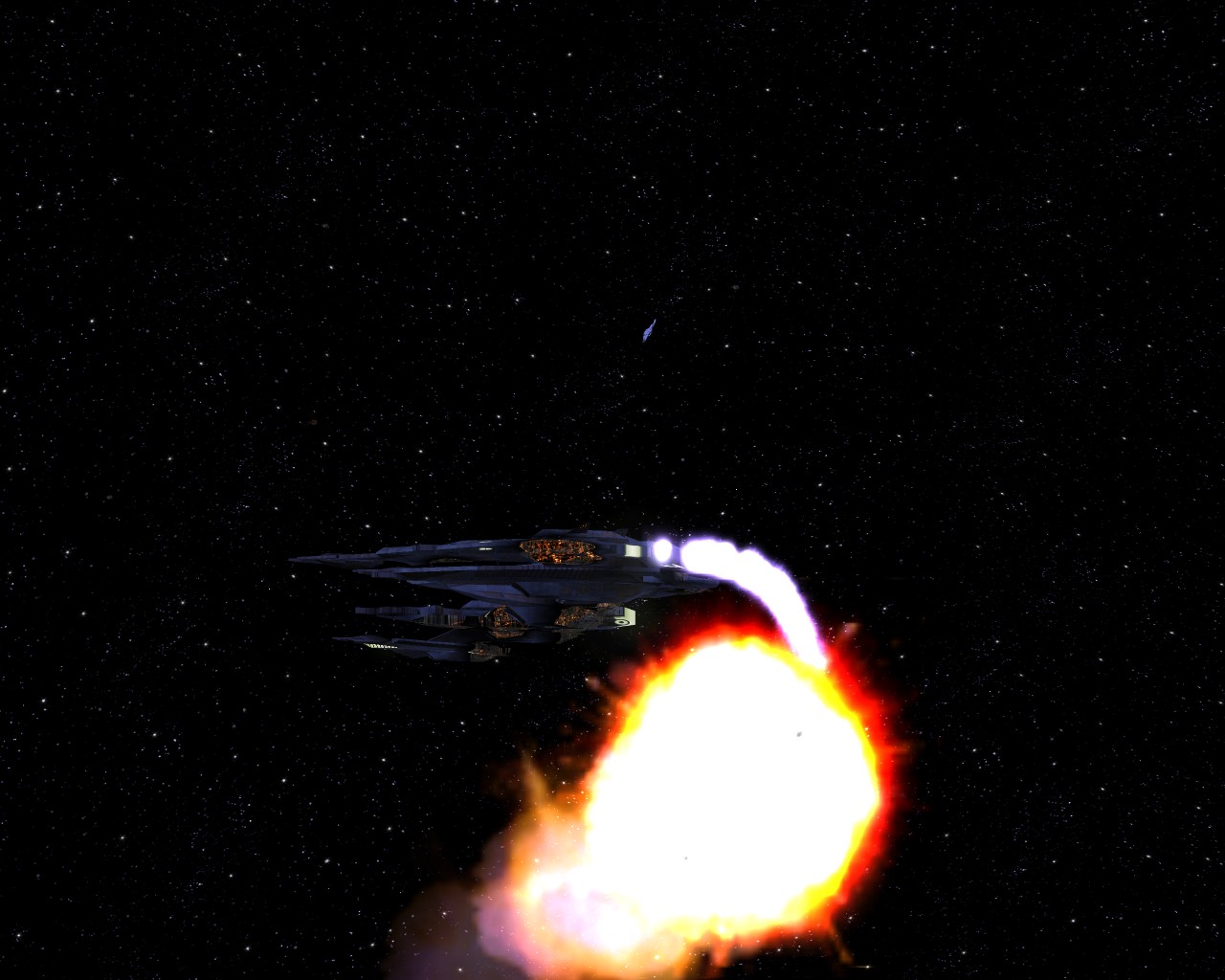 Also das einzige, womit ich es noch nicht versucht habe, ist mit den BSG Schiffen. Ich hab jetzt auch grad noch mal es mit der Andromeda und der Deadalus aus Stargate ausprobiert und es funktioniert einwandfrei. Am tödlichsten ist dabei immer noch die Andromeda, da sie unglaublich viele Pulslaser nach allen Seiten abfeuern kann. Ich hab auch noch ein paar Screensohts gemacht. Diesmal ist es eine Mischung aus Stargate und Star Trek, wobei ich eigentlich noch etwas aufwändigere Bilder machen wollte, nur eben nicht so viel Zeit dafür hatte. Das erste Bild ist nur zur Anschauung, wo man etwas sieht, das zu mehreren Seiten die Railguns abgefeuert werden und in der Ferne sieht man den Schweif einer der Raketen.