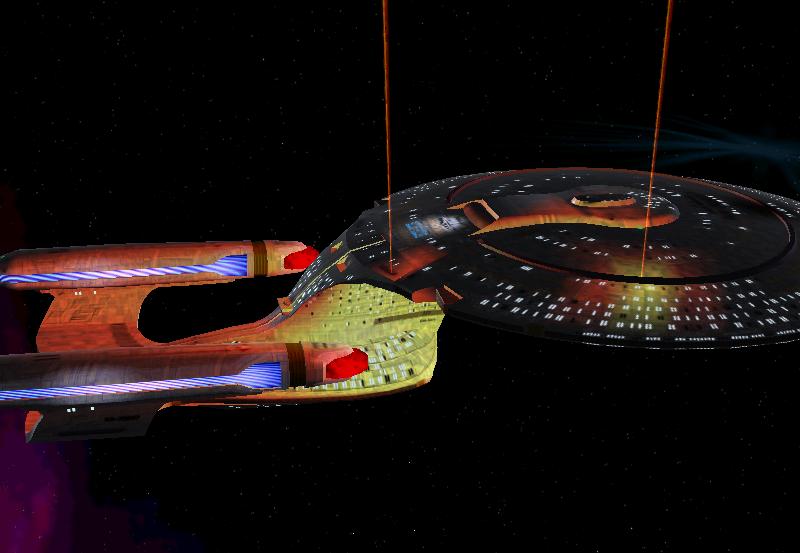 Also ich weis grad net was für ne Grafikkarte ich hab, aber bei mir sieht die Grafik eigentlich ziemlich gut aus.Hier sind wieder ein paar Bilder. Bei den Bildern, wo die Galaxy und die Sovi soviele Phaser auf einmal abfeuert, habe ich den Modus Blind Firing benutzt. Der gefällt mir ziemlich gut